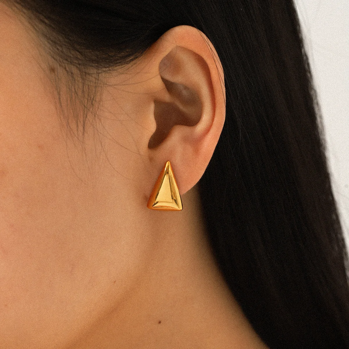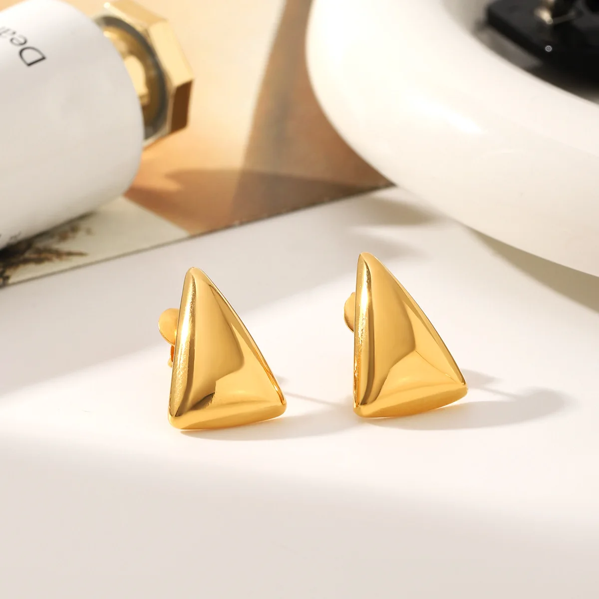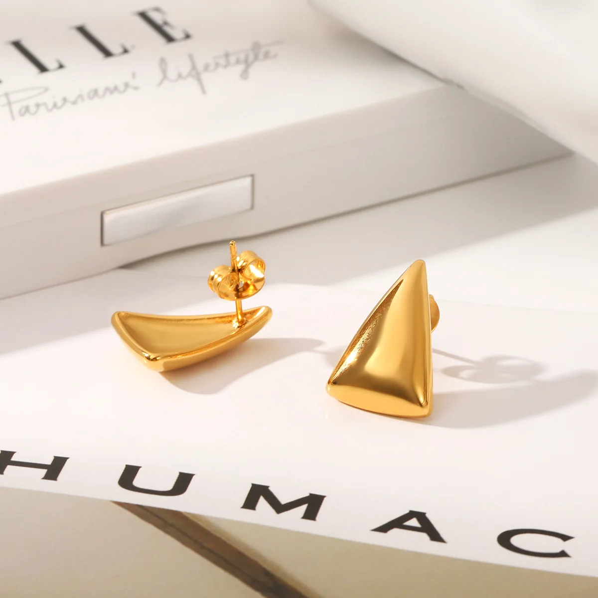 MW Fashion Stainless Steel Geometric Triangle High Polished 18K Gold Plated Stud Earrings Non Tarnish Smooth Women's
