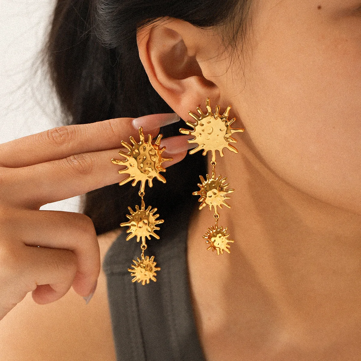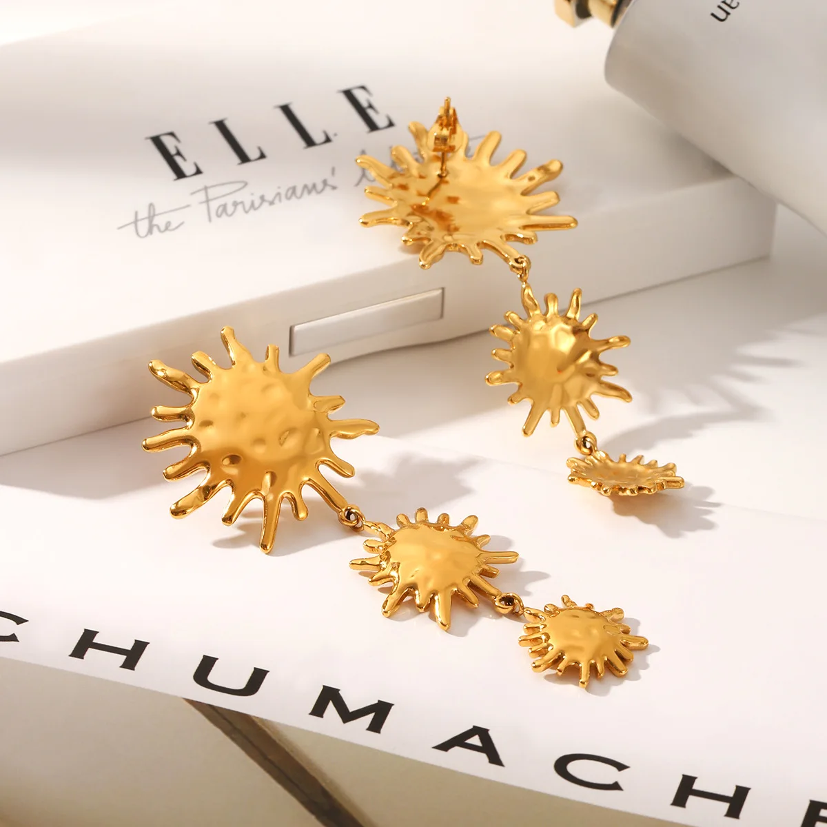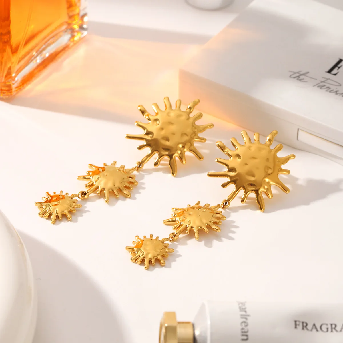 MW Fashion Stainless Steel 18K Gold Plated Drop Flower Pendant Earrings Women Party Gift