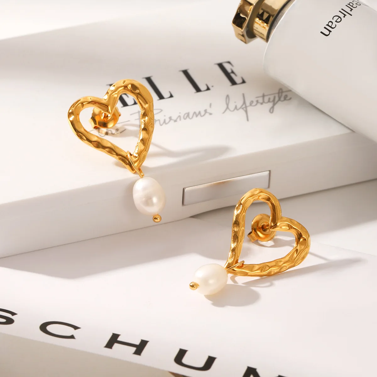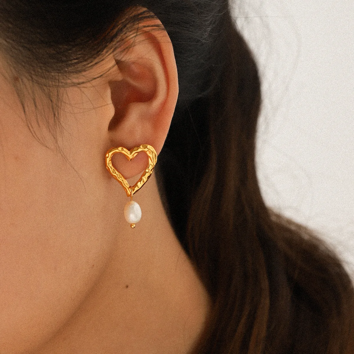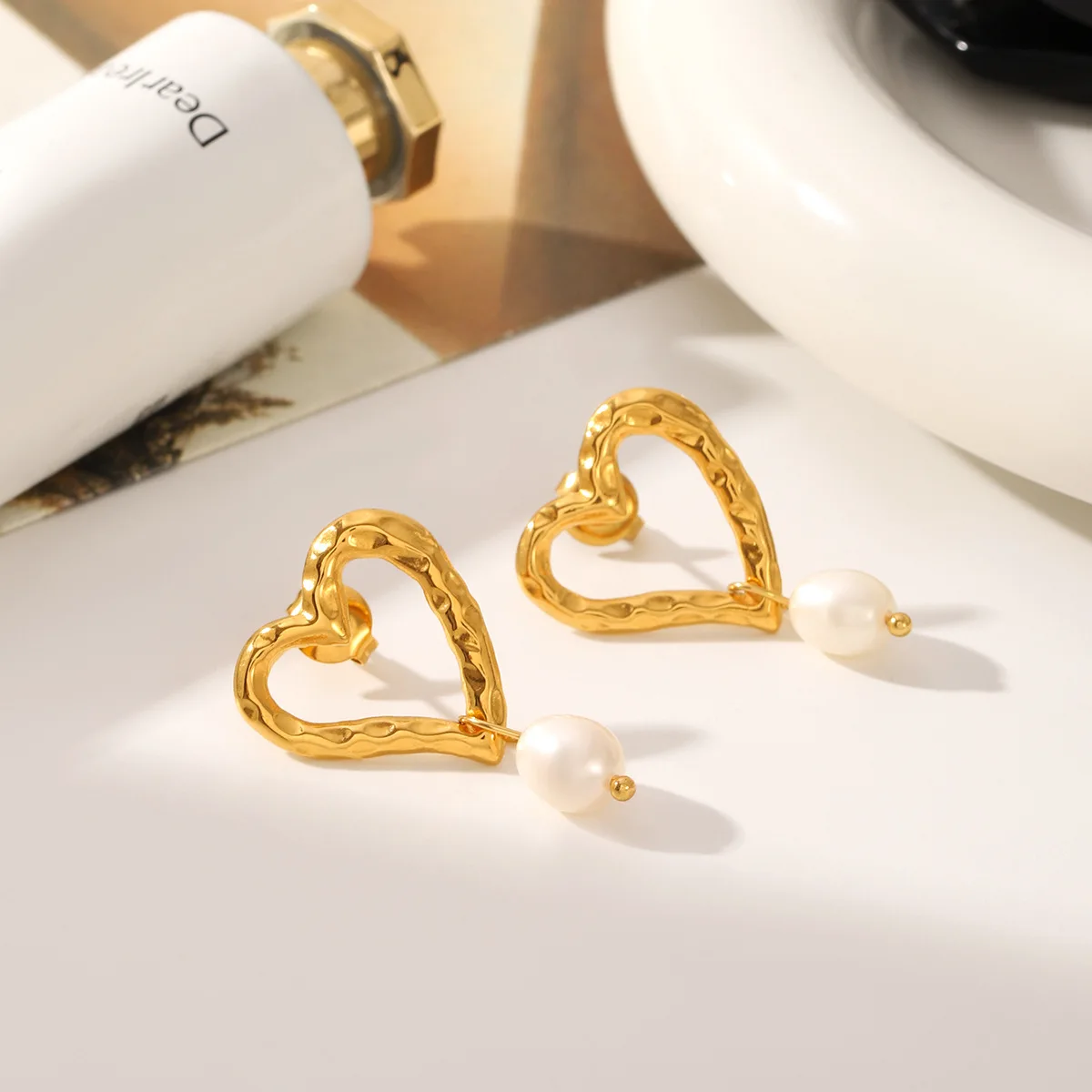 MW Trendy Hypoallergenic Earrings Women Stainless Steel Earring 18K PVD Gold Plated Fashion Heart Pearl Charm Stud Earring