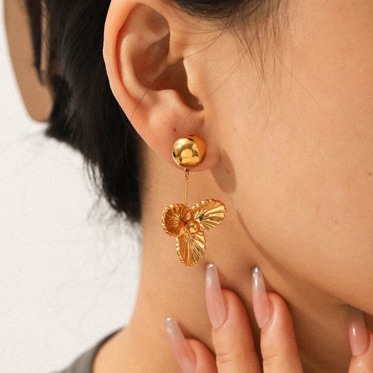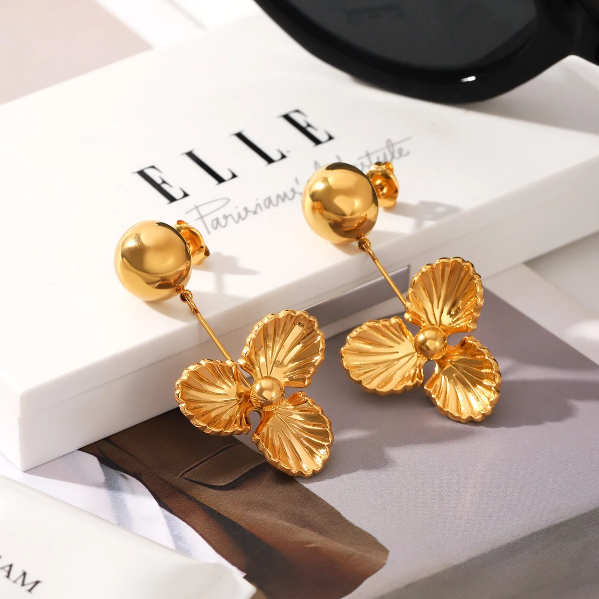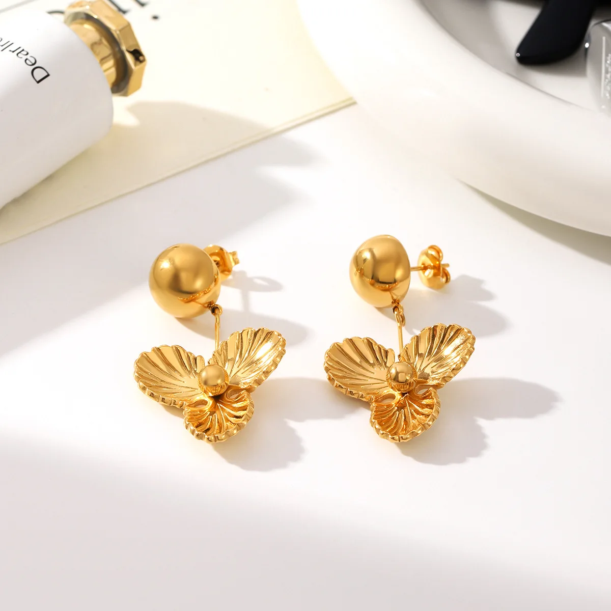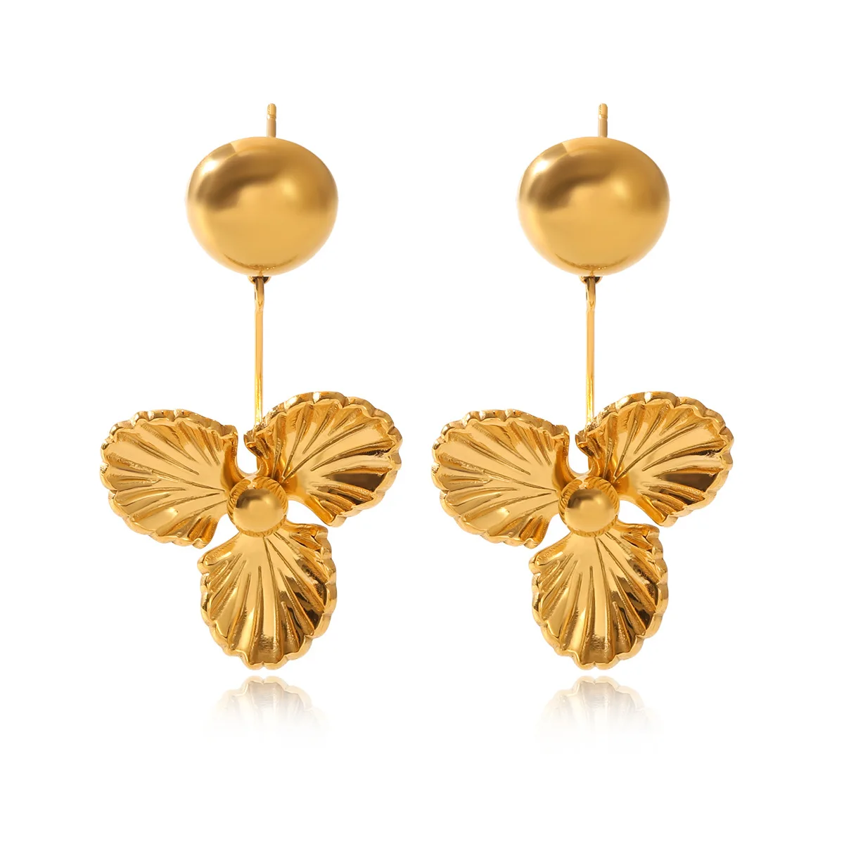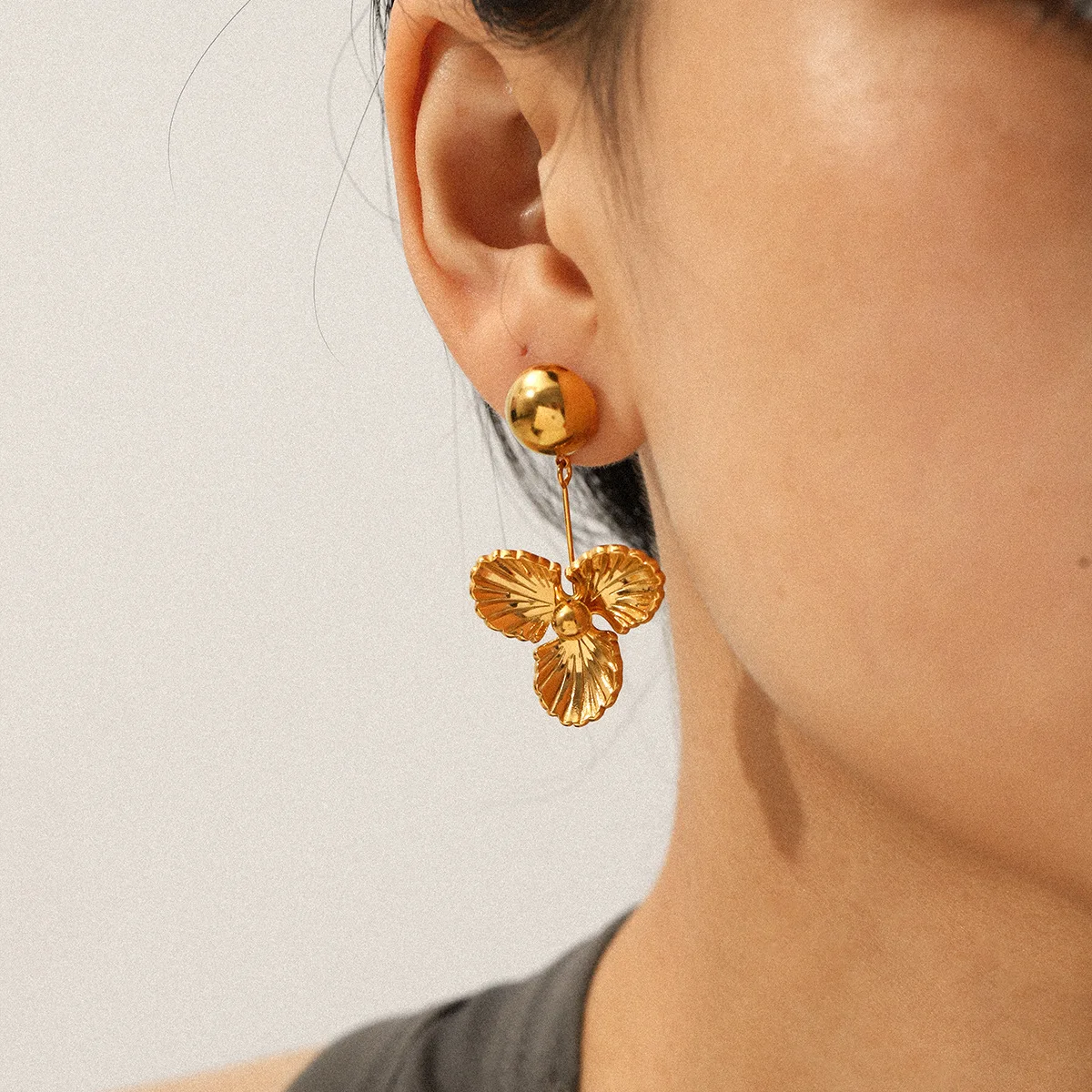 MW Trendy Romantic Waterproof Stainless Steel Flower 18K Gold PVD Plated Drop Earrings Gift Women