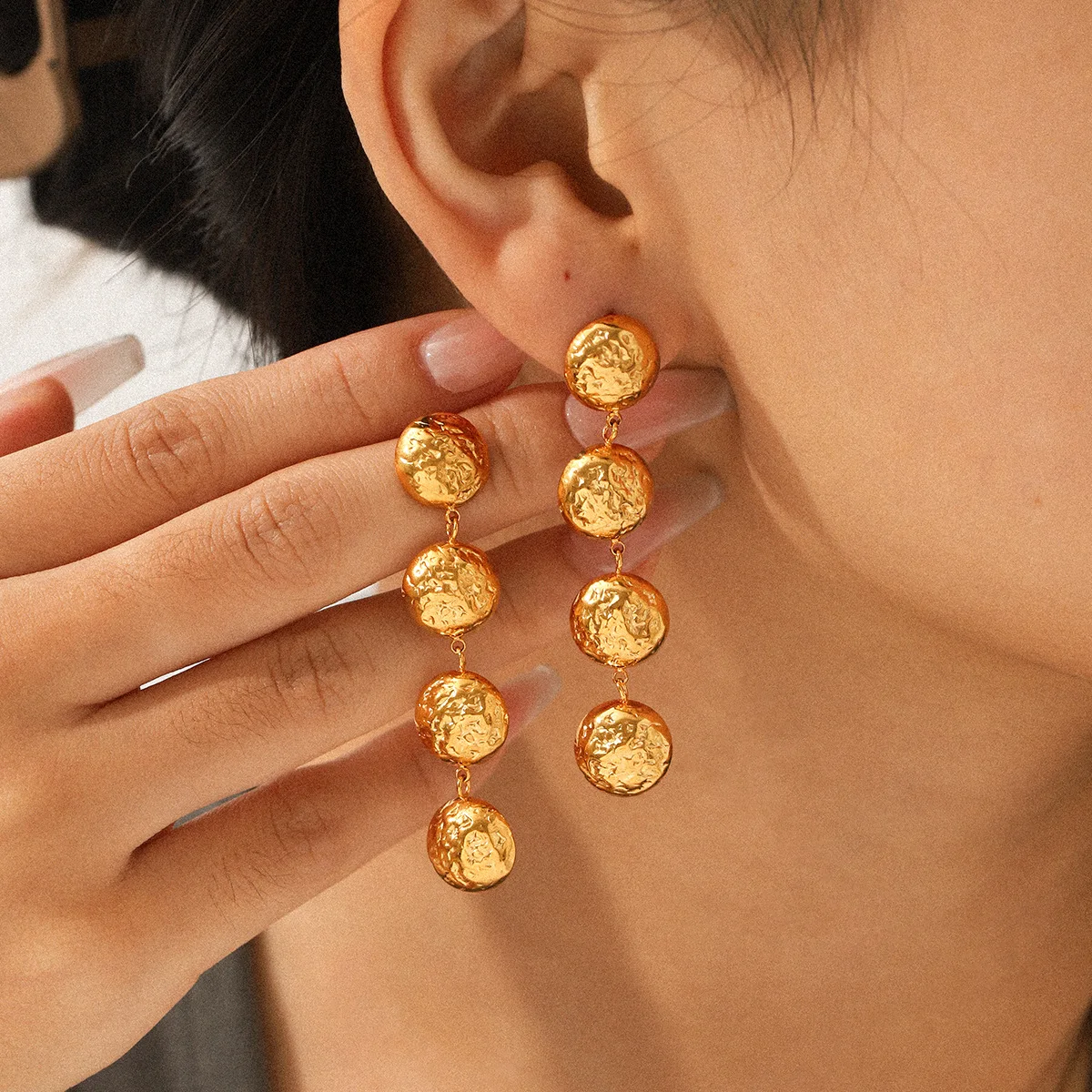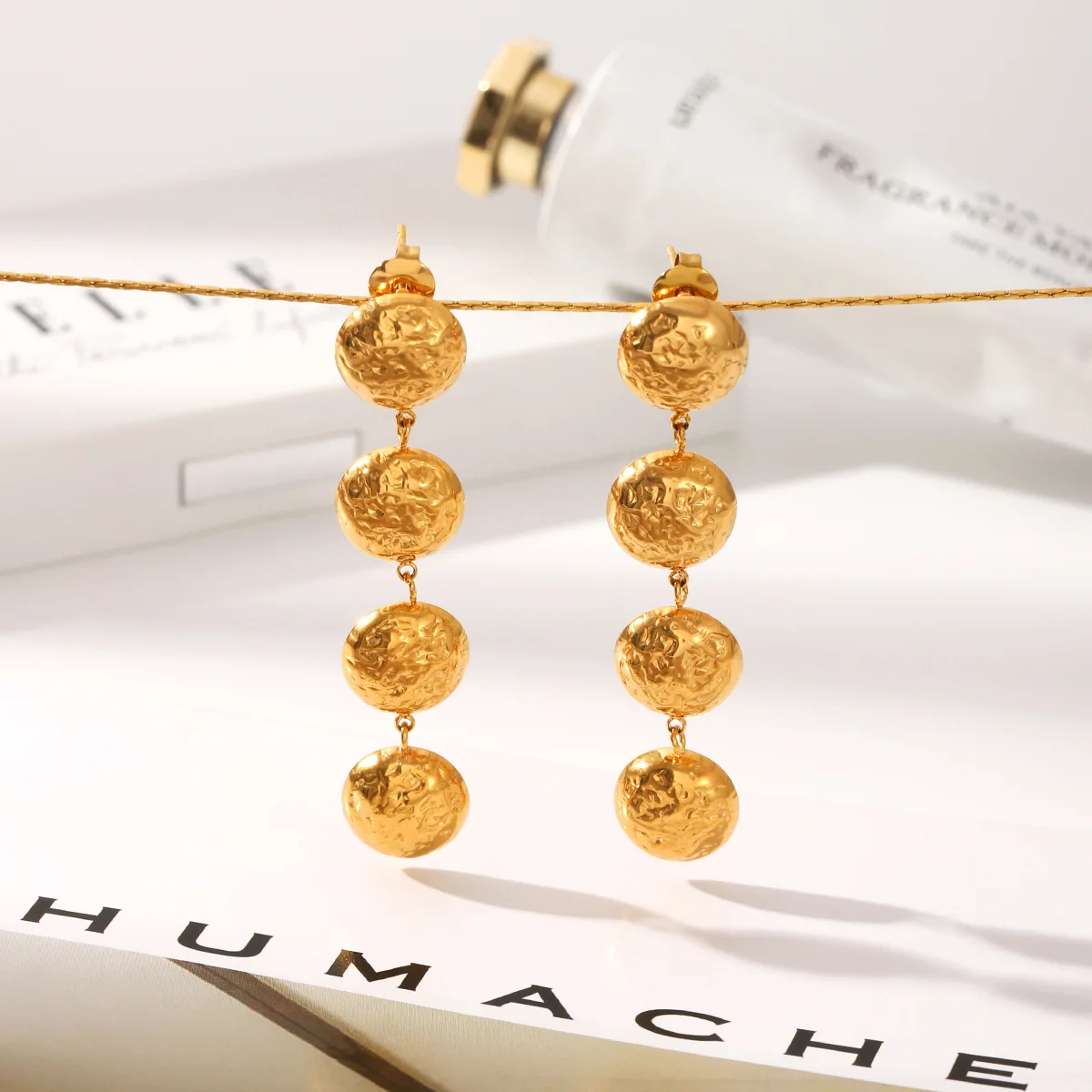 MW Ins 18K Gold PVD Plated Stainless Steel Hammered Half Ball Flower Drop Earring Hammer Drop Long Earrings for Women