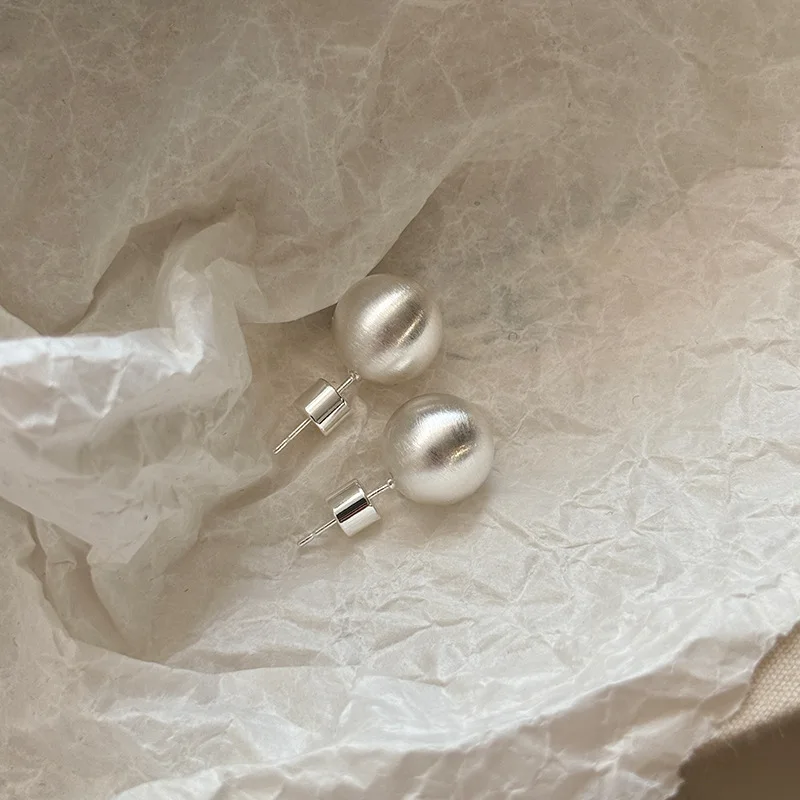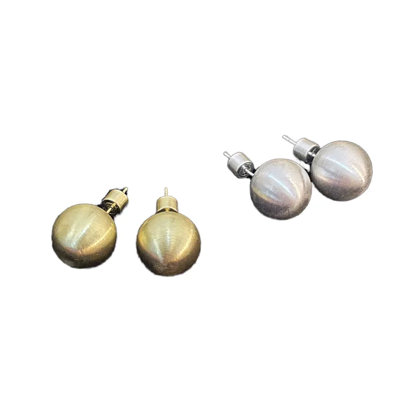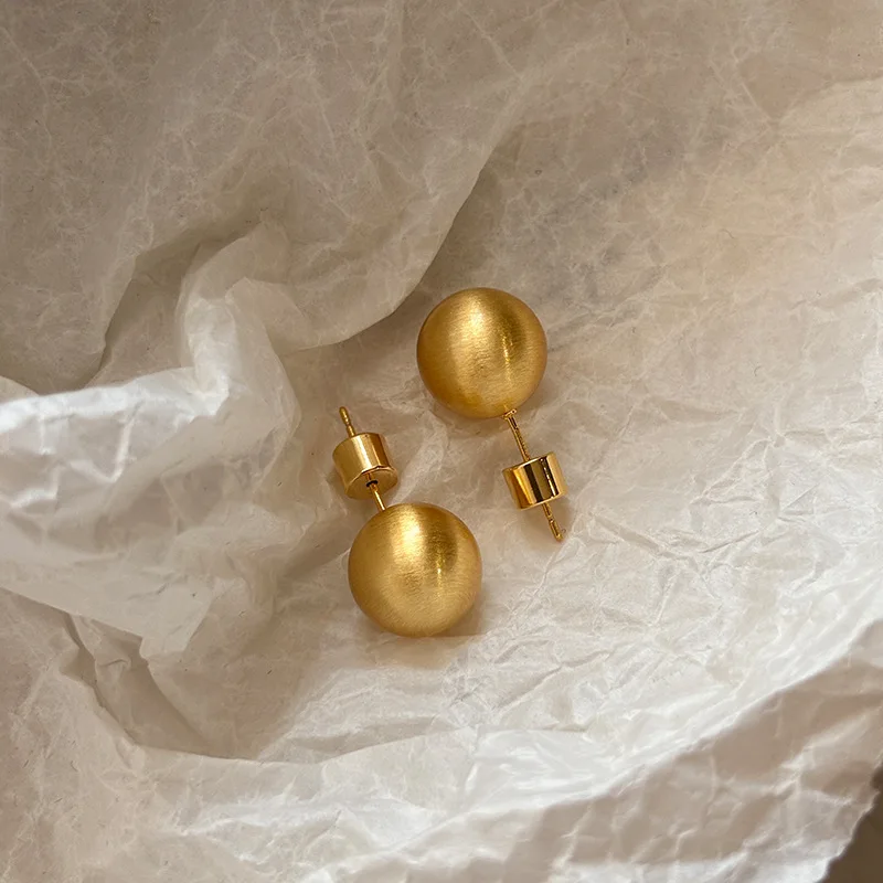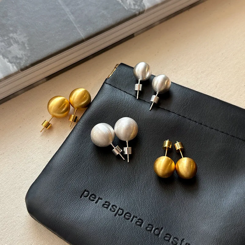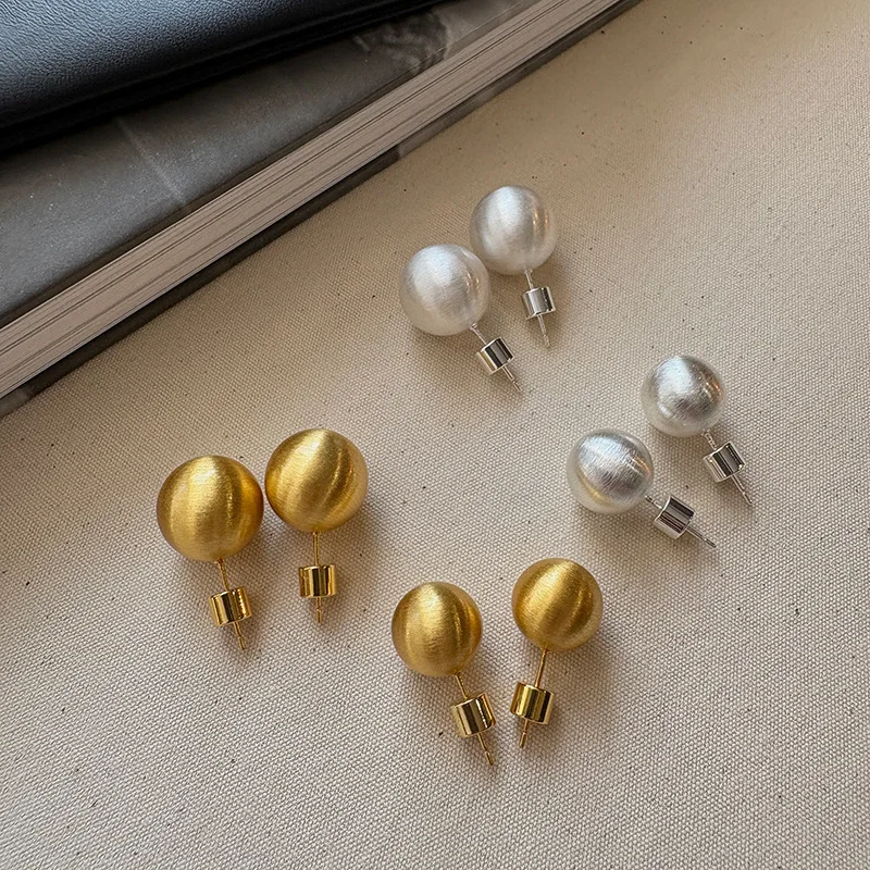 MW Fashion Gold Silver Plated Metal Matte Brushed Earrings 18K Real Gold Plated Stainless Steel Simple Round Ball Stud Earring