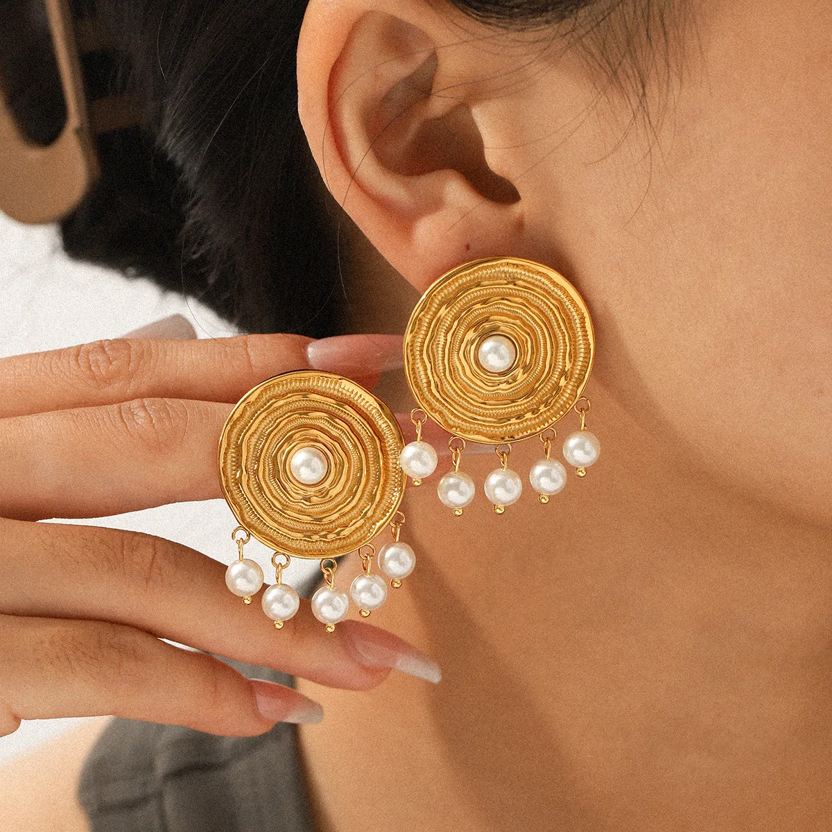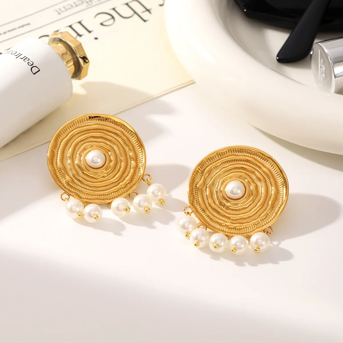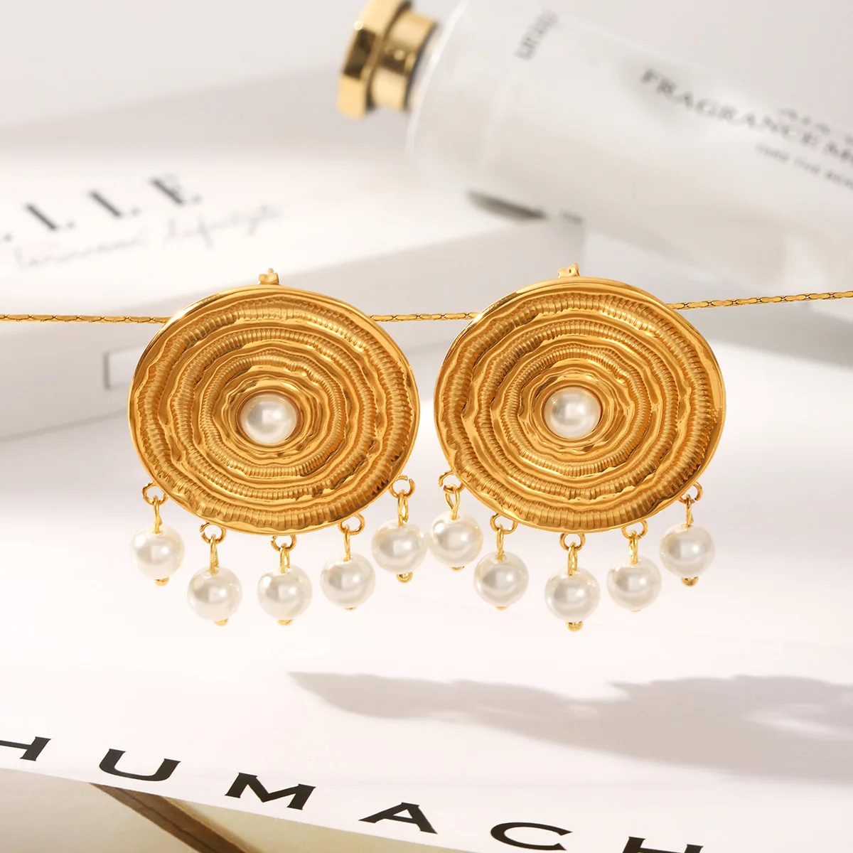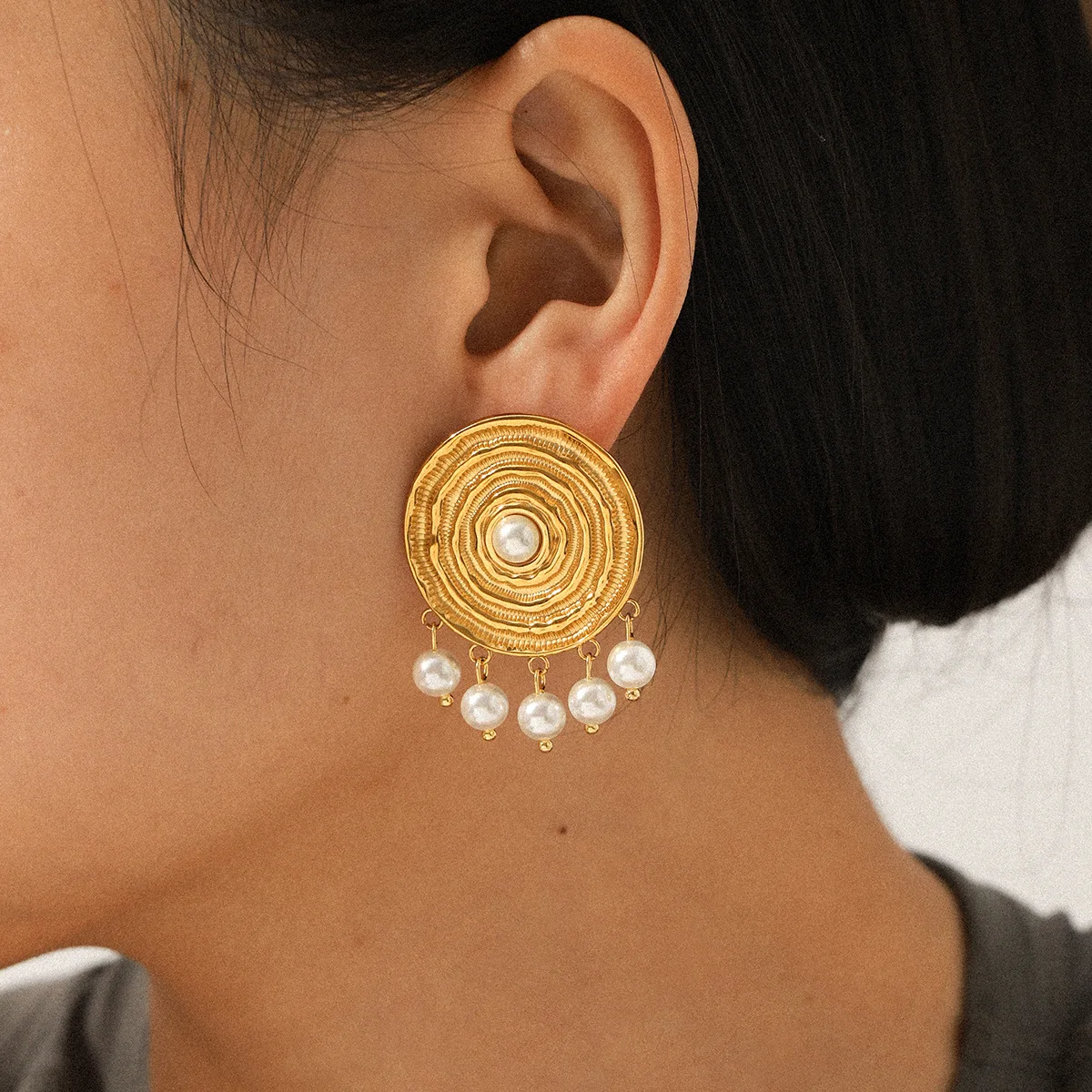 MW Classic Jewelry 316L Stainless Steel Non-Tarnish for Women 18K Gold Plated Trendy Gift Unique Spiral Pearl Drop Earrings