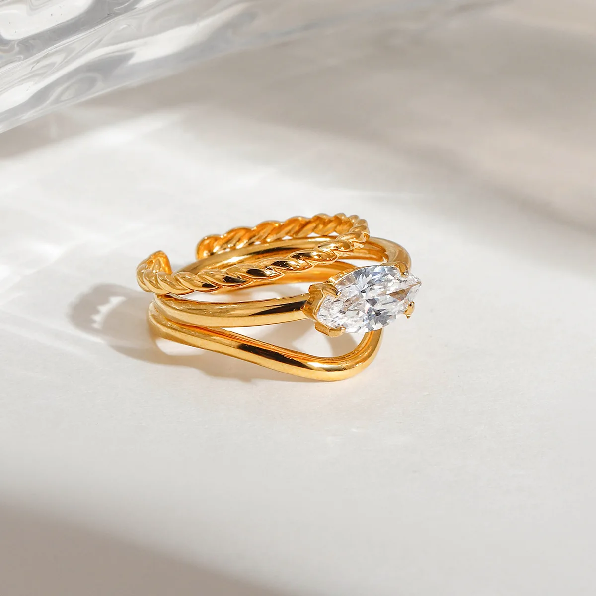Mirawell Women's Stylish 18K Gold-Plated Stainless Steel Ring-Trendy Niche Design Stackable Daily Use for Anniversary & Wedding
