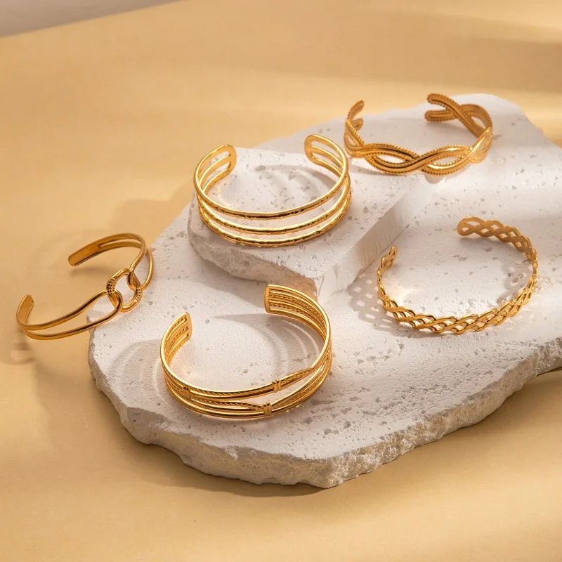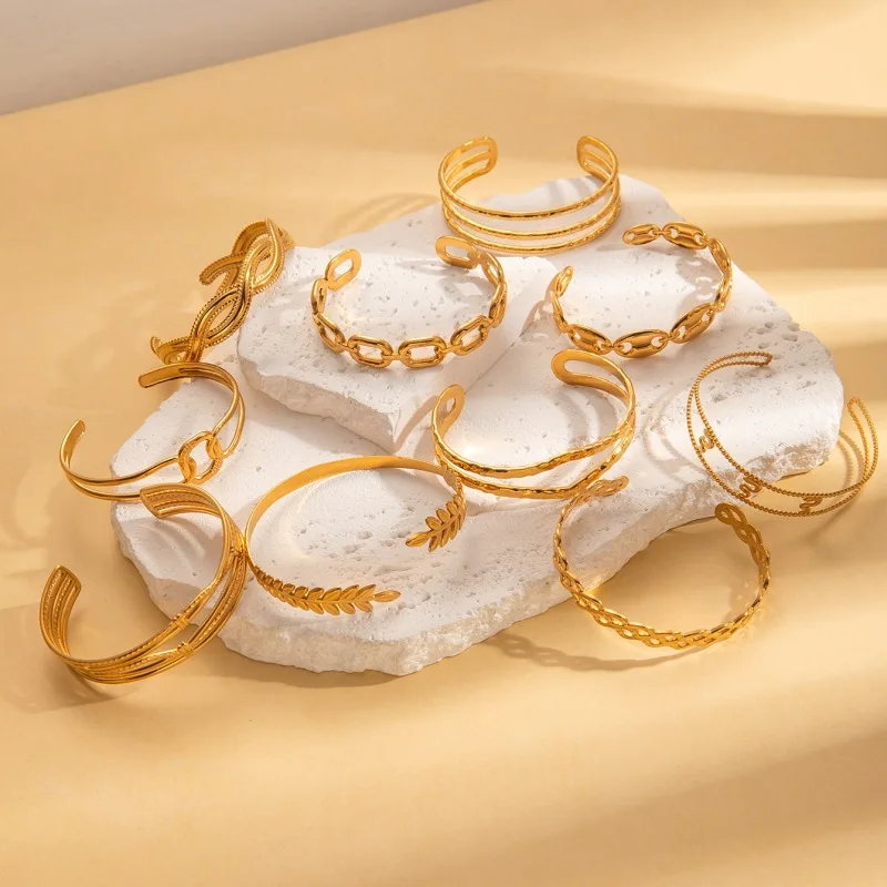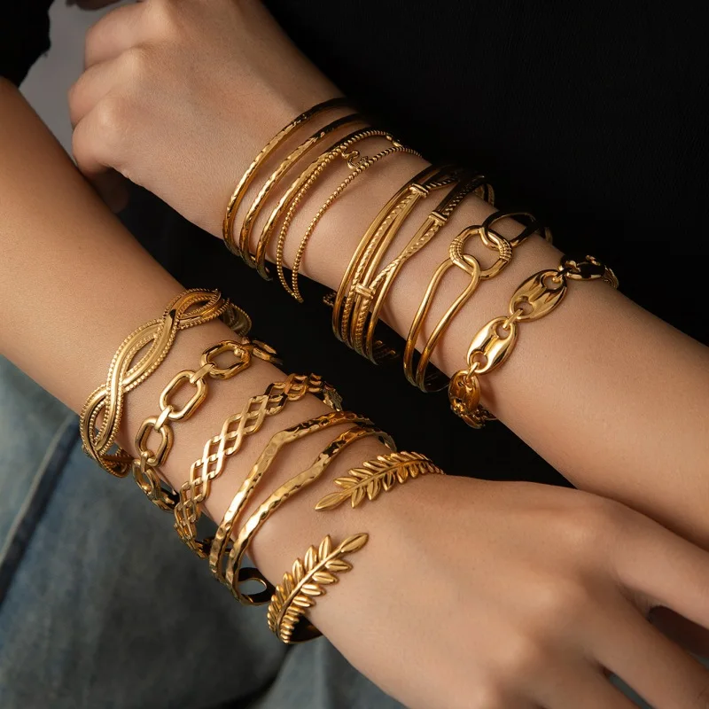 MW New Fashion Gold Metal Geometric 18k Gold Leaf Letter Chains Tennis Open Charm Bangle Bracelet for Women Jewelry Punk Style