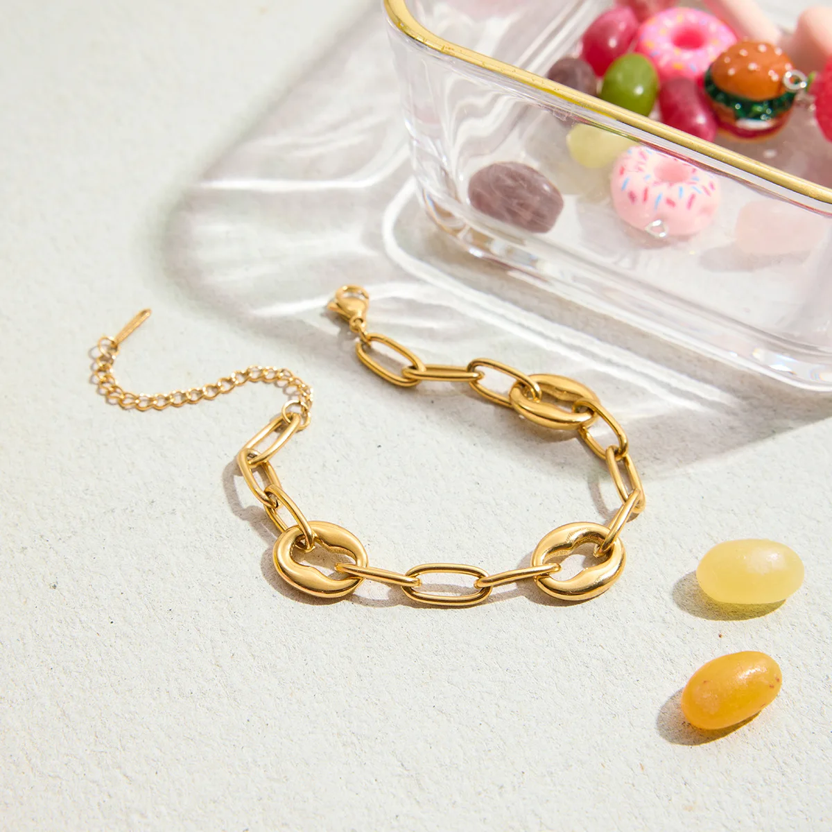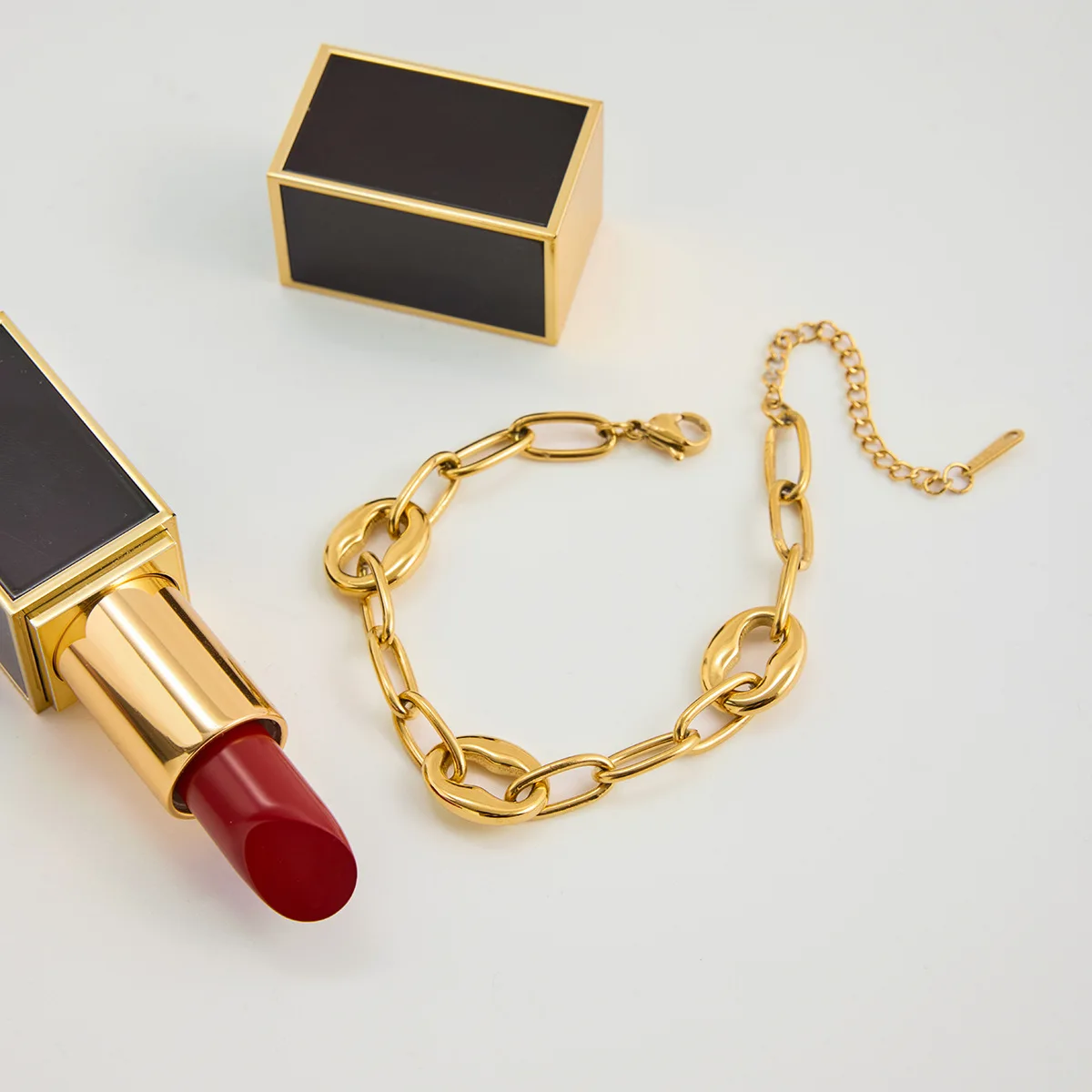 MW 18K PVD Gold Plating Stainless Steel Pig Combine Nose Chain Bracelet and Waterproof Daily Wearing Oval