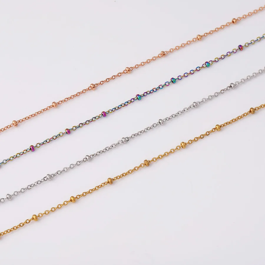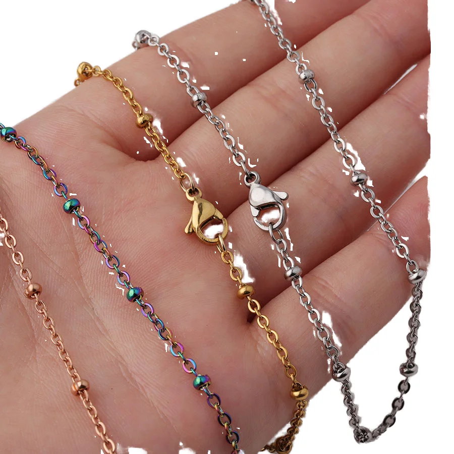 MW 45cm PVD 18K Gold Plated Classic Stainless Steel Satellite Bead Chain Necklace for Women Men DIY Jewelry Making Anniversary