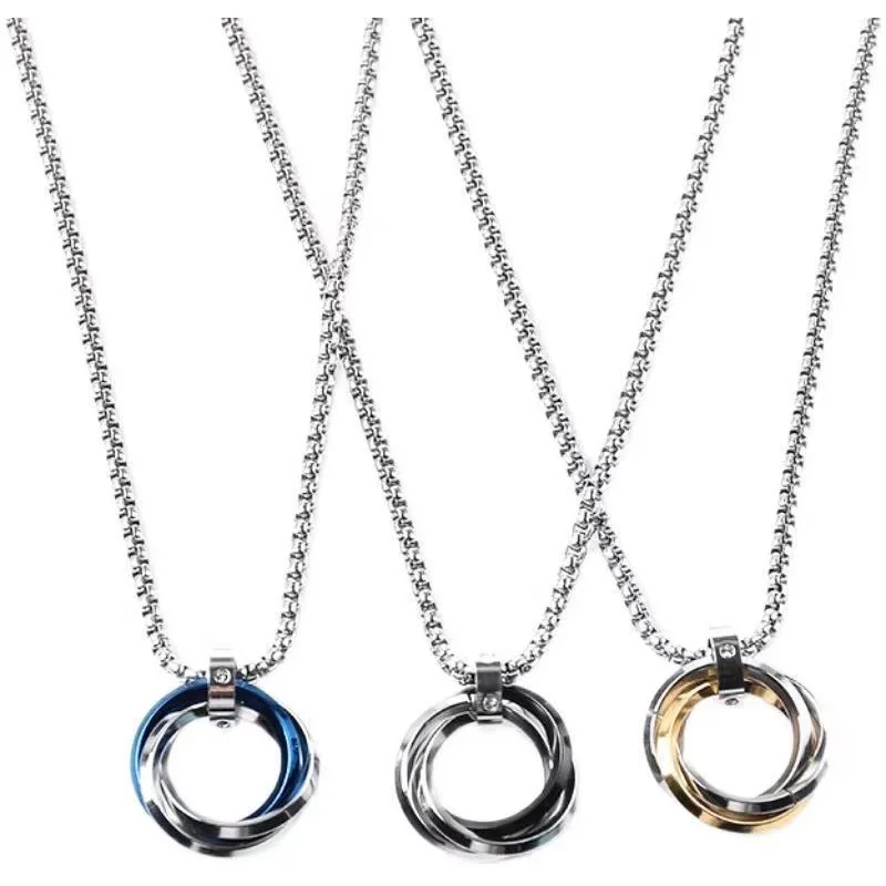 MW Hot Sales Gold Christian 3 Rings Shell Pendant Necklace for Friends Stainless Steel Unisex Couple Necklaces Punk Sweater