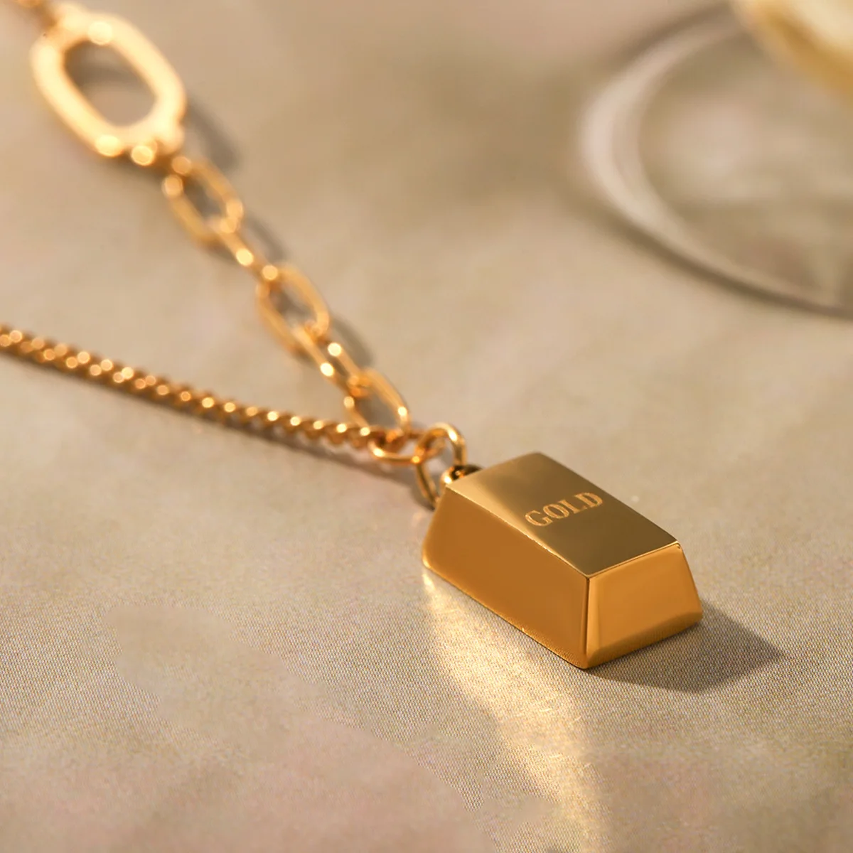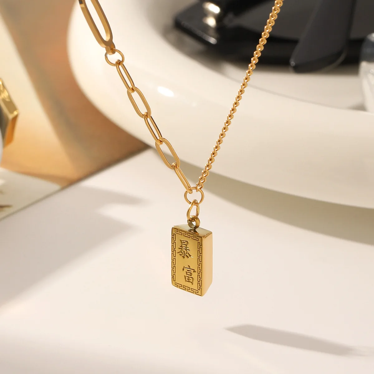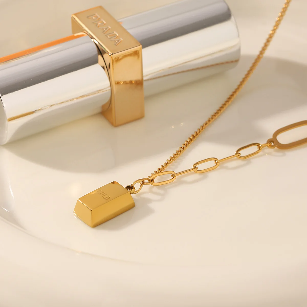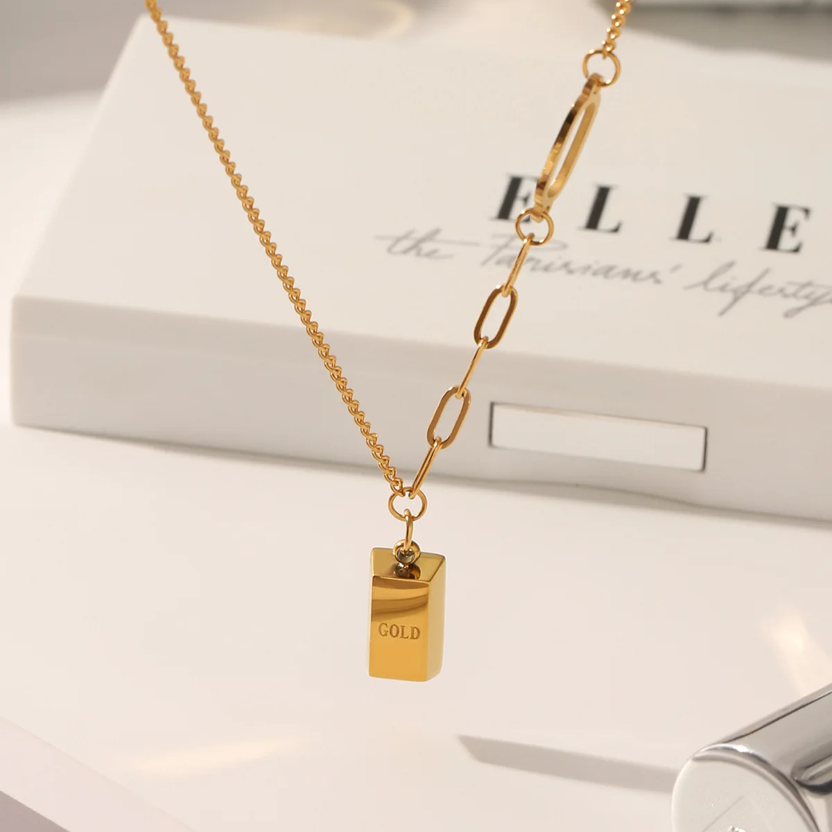 MW Fashion Wholesale Brick Pendant Necklace Stainless Steel Necklace Women Light Luxury Stitching Chain Gold Necklace Jewelry