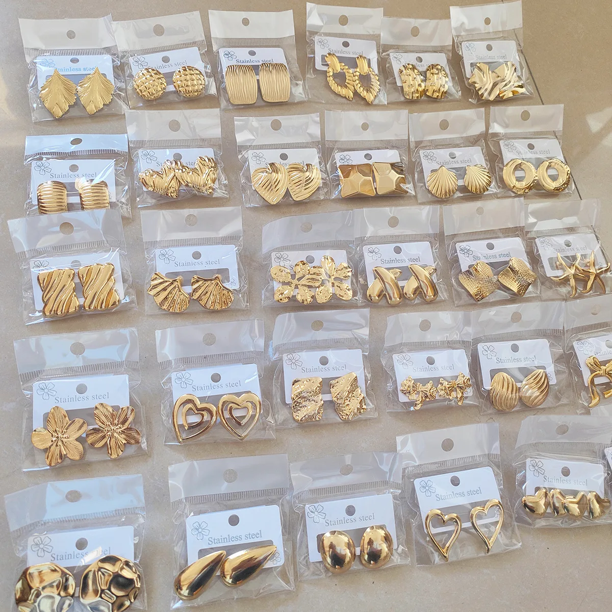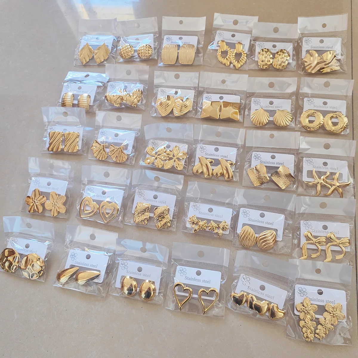 MW Wholesale Bulk Women Stainless Steel Punk Geometric 18K Gold Plated Flower Heart Bow Square Stud Earring Waterproof Earring