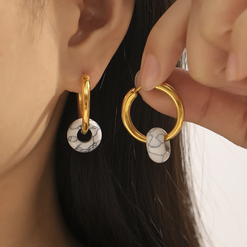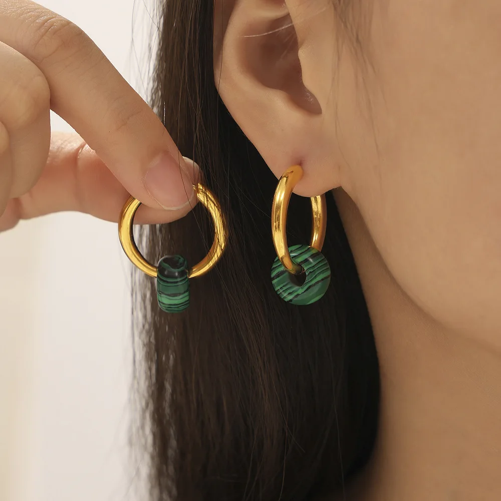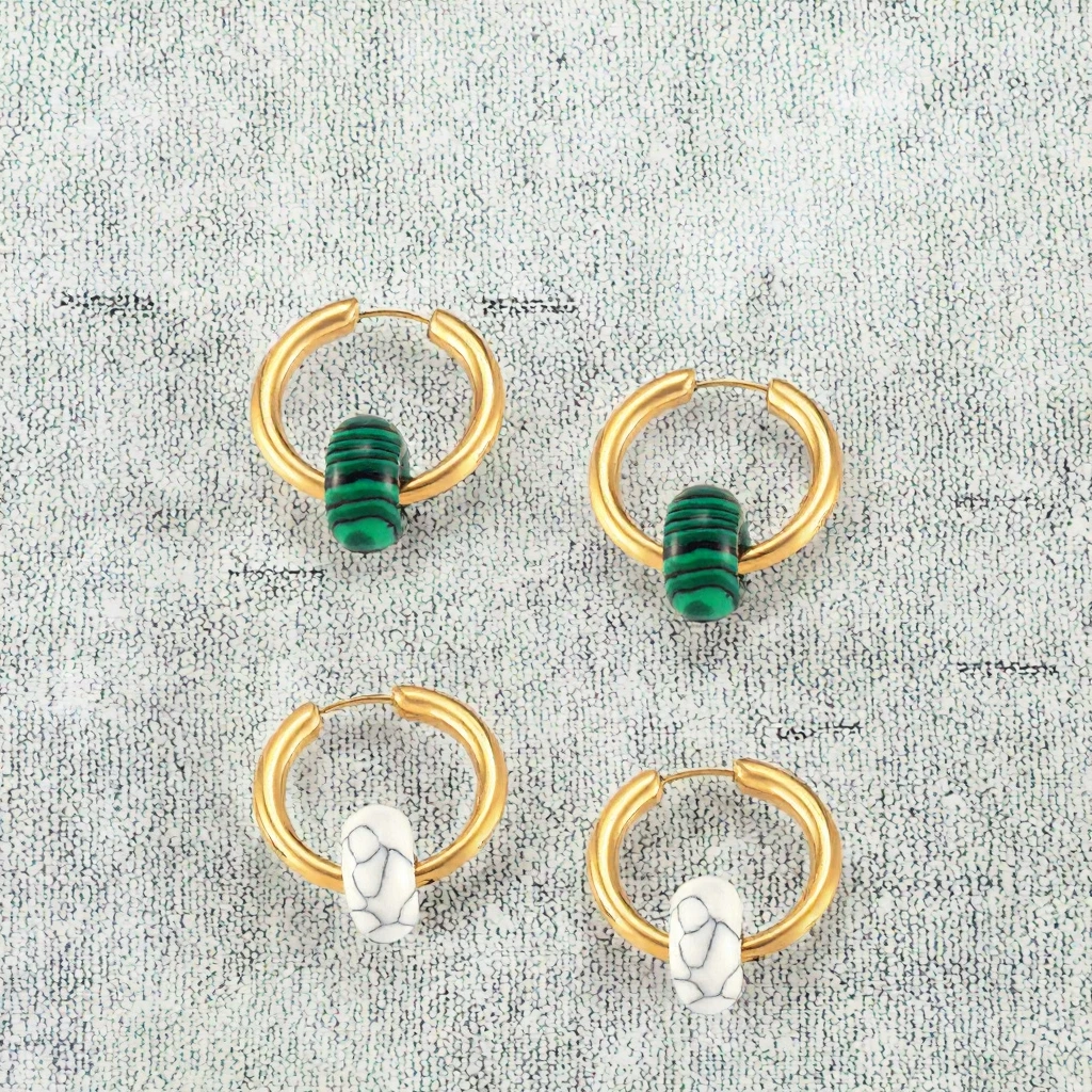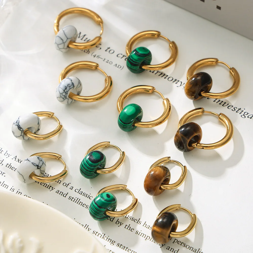 MW Trendy Stainless Steel Round Hoop Earrings 18K Gold Stainless Steel Turquoise Tiger Eye Natural Stone Hoop Earrings for Women