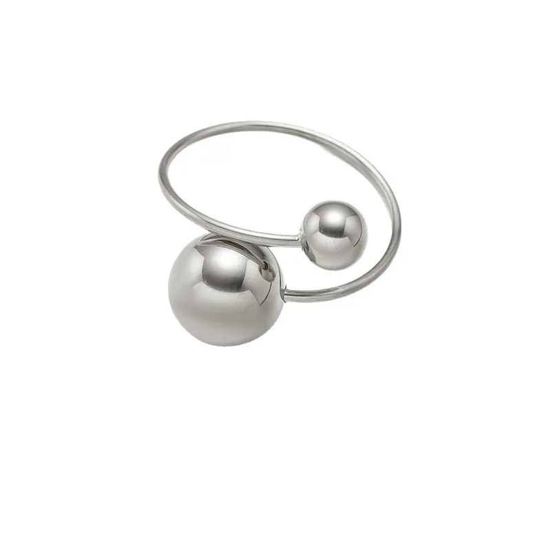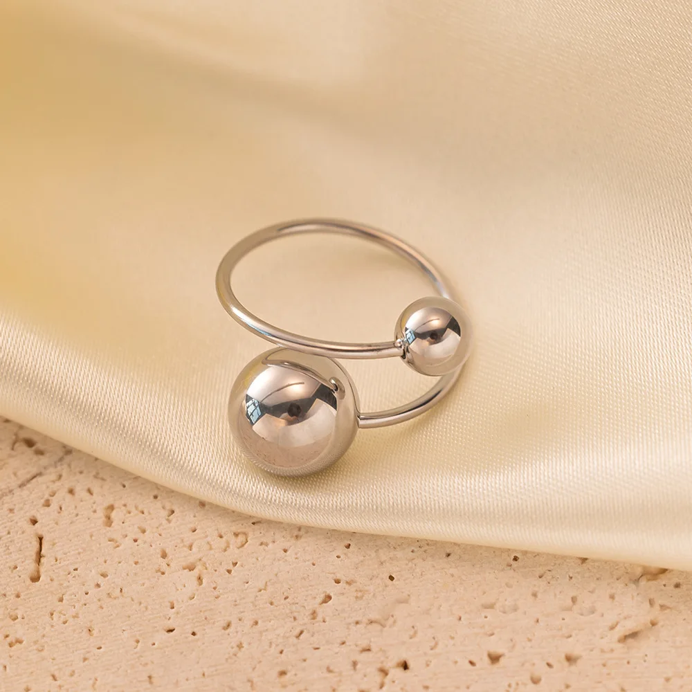 MW Trendy Wholesale Custom Minimalist Finger Ring Jewelry Golden Metal Stainless Steel Small Ball Adjustable Ring