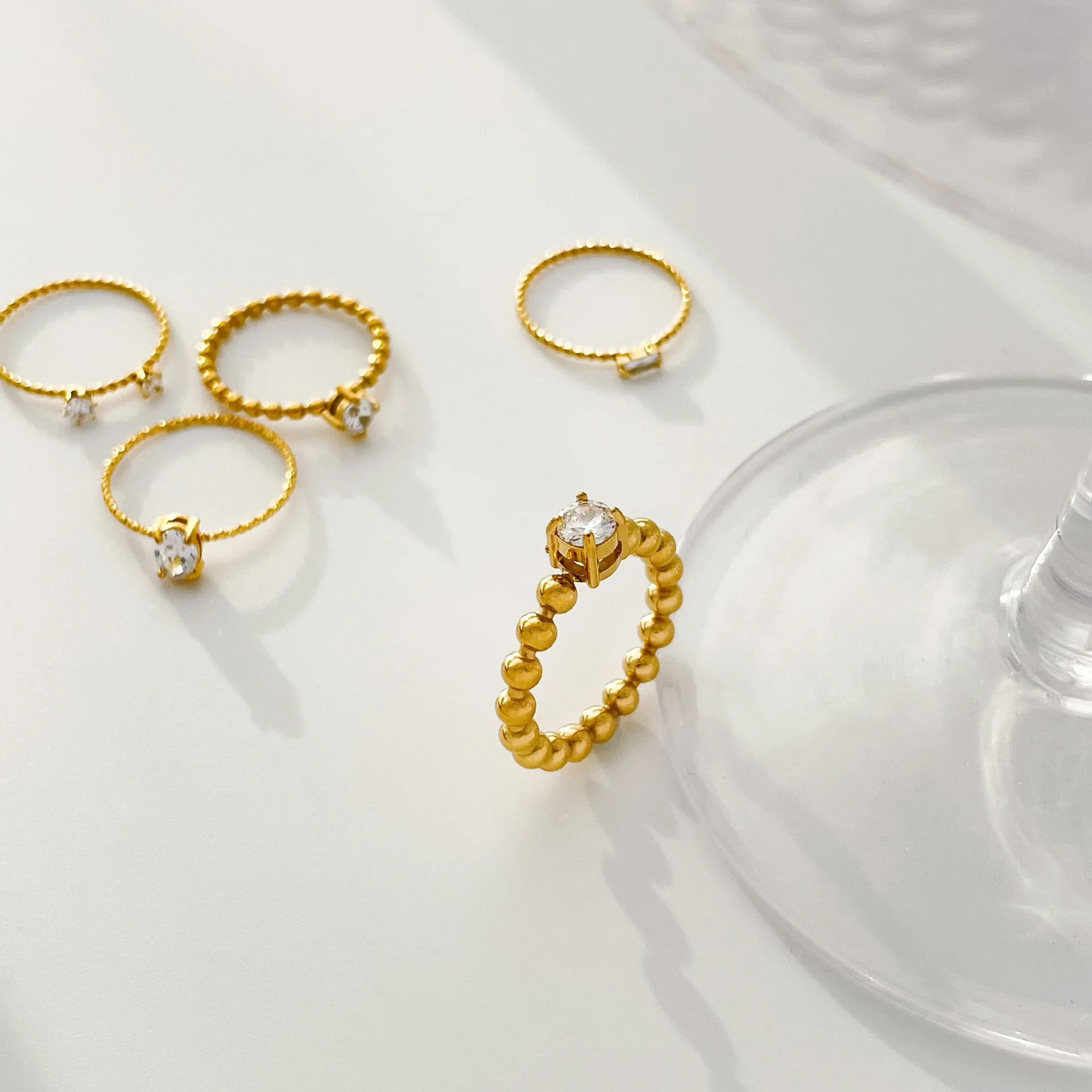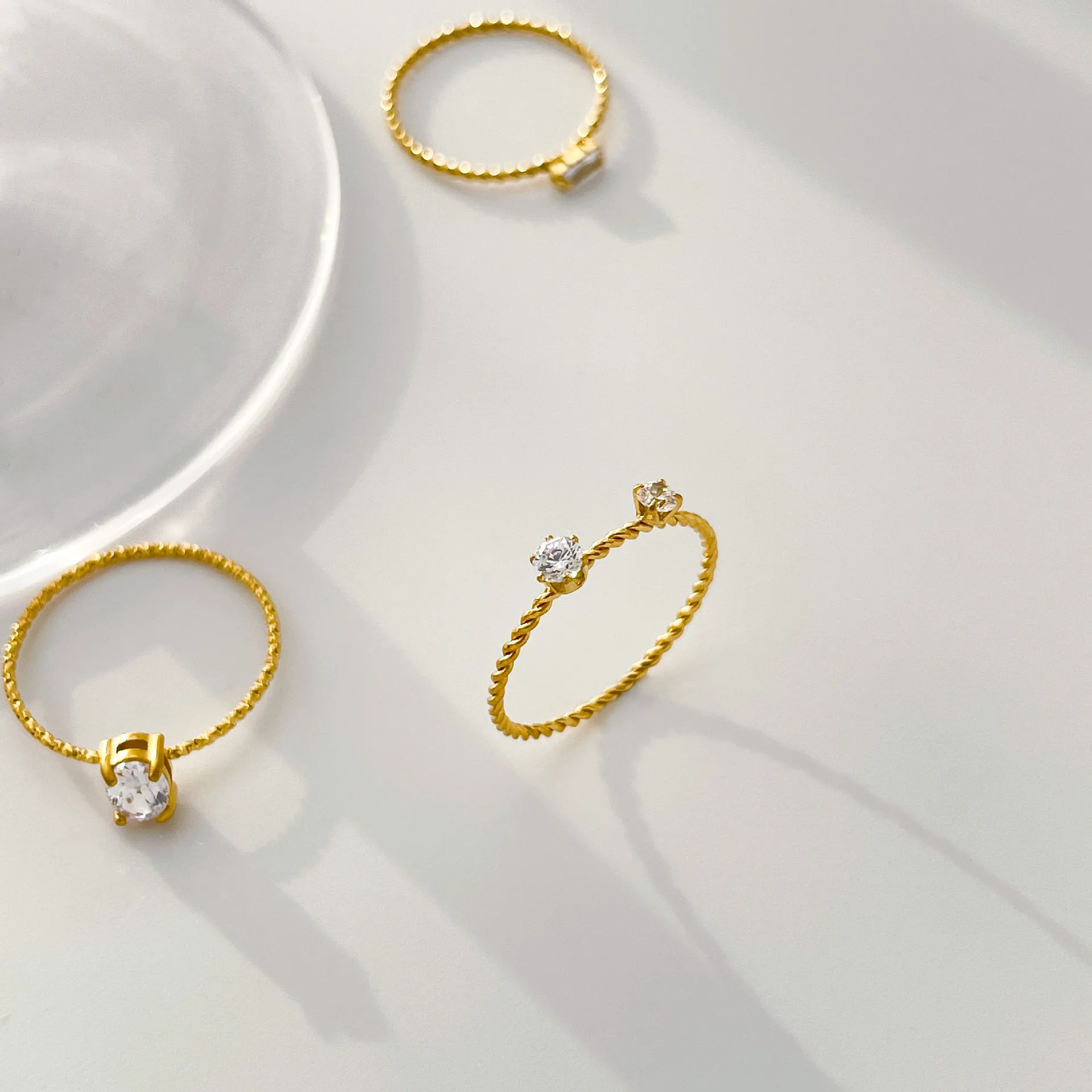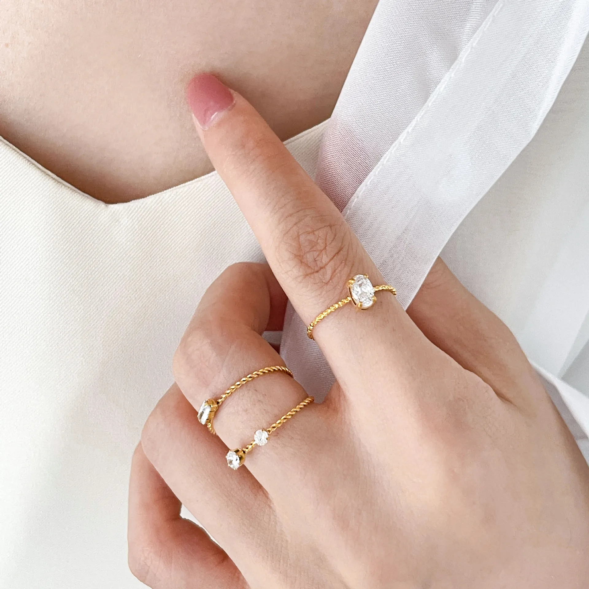 MW Stainless Steel 18K Gold Plated Minimalist Elegant White Zircon Ring Women Alien Double Line Symmetry Zircon Inlaid Ring Gift