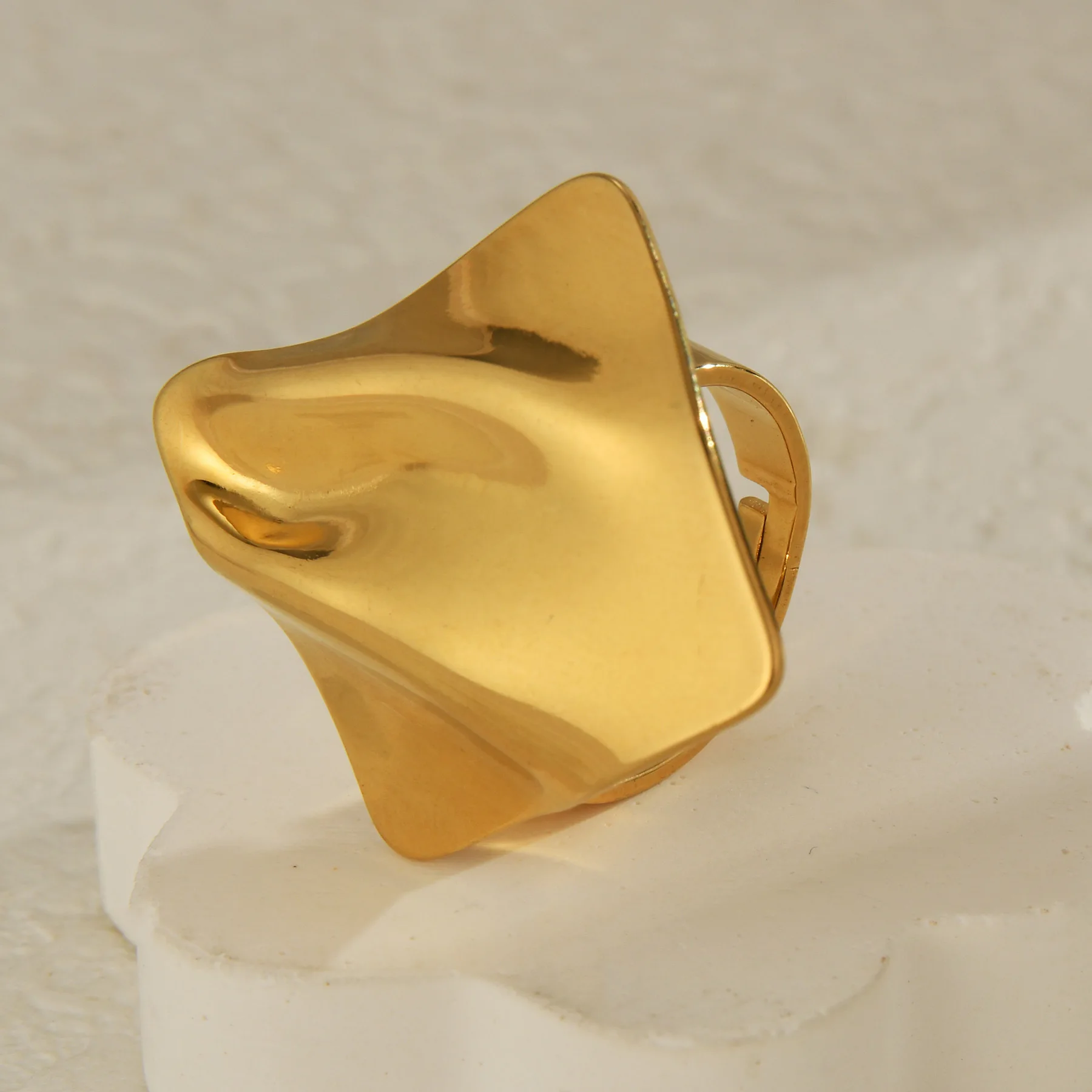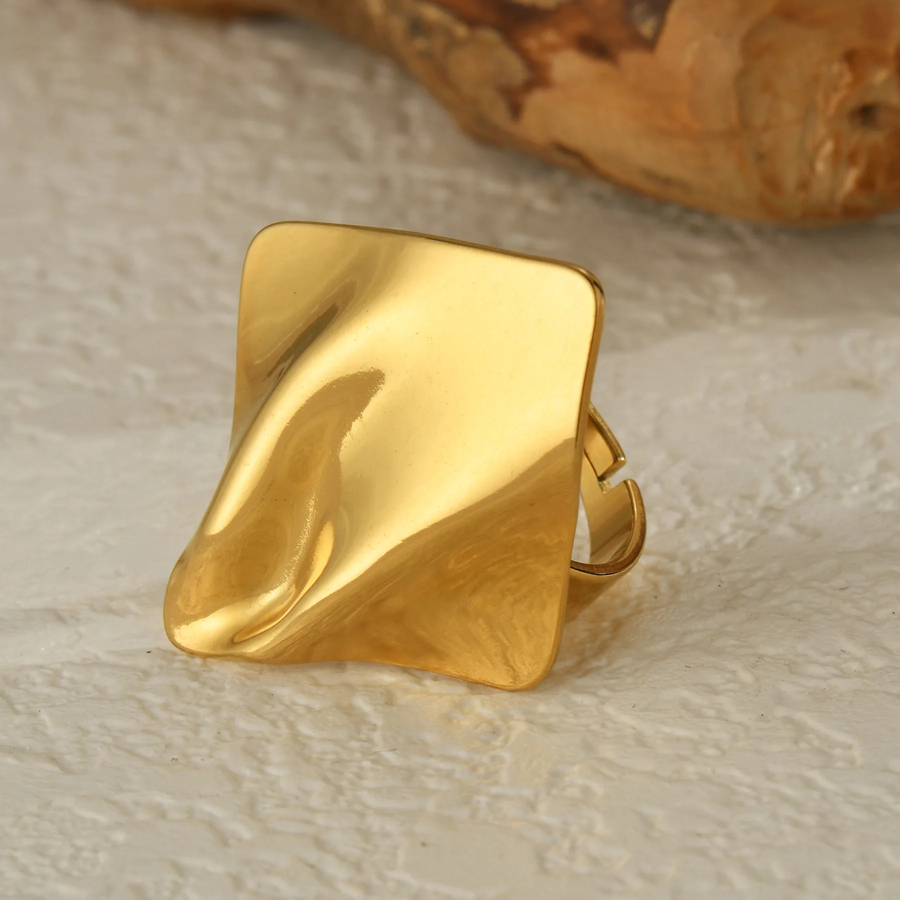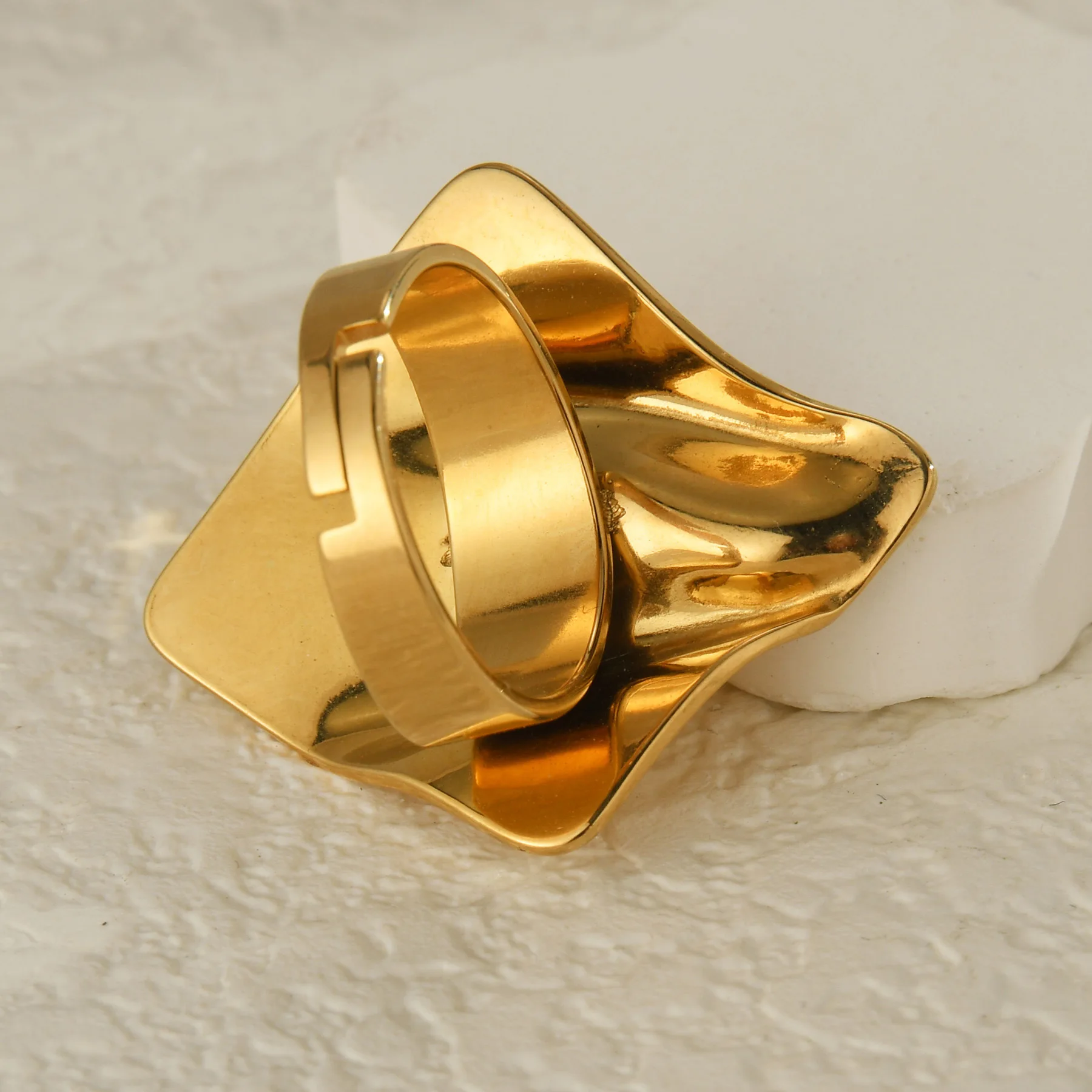 MW Fashion Jewelry Waterproof Non Tarnish 18K Gold Plated Irregular Square Wave Stainless Steel Jewelry Rings for Women Gift