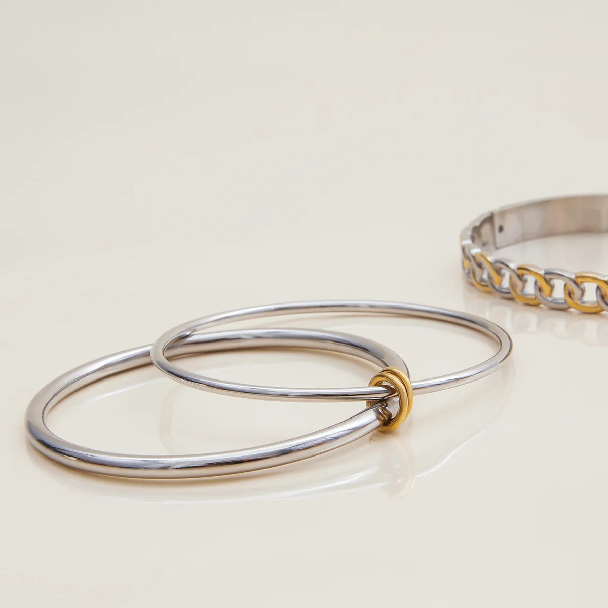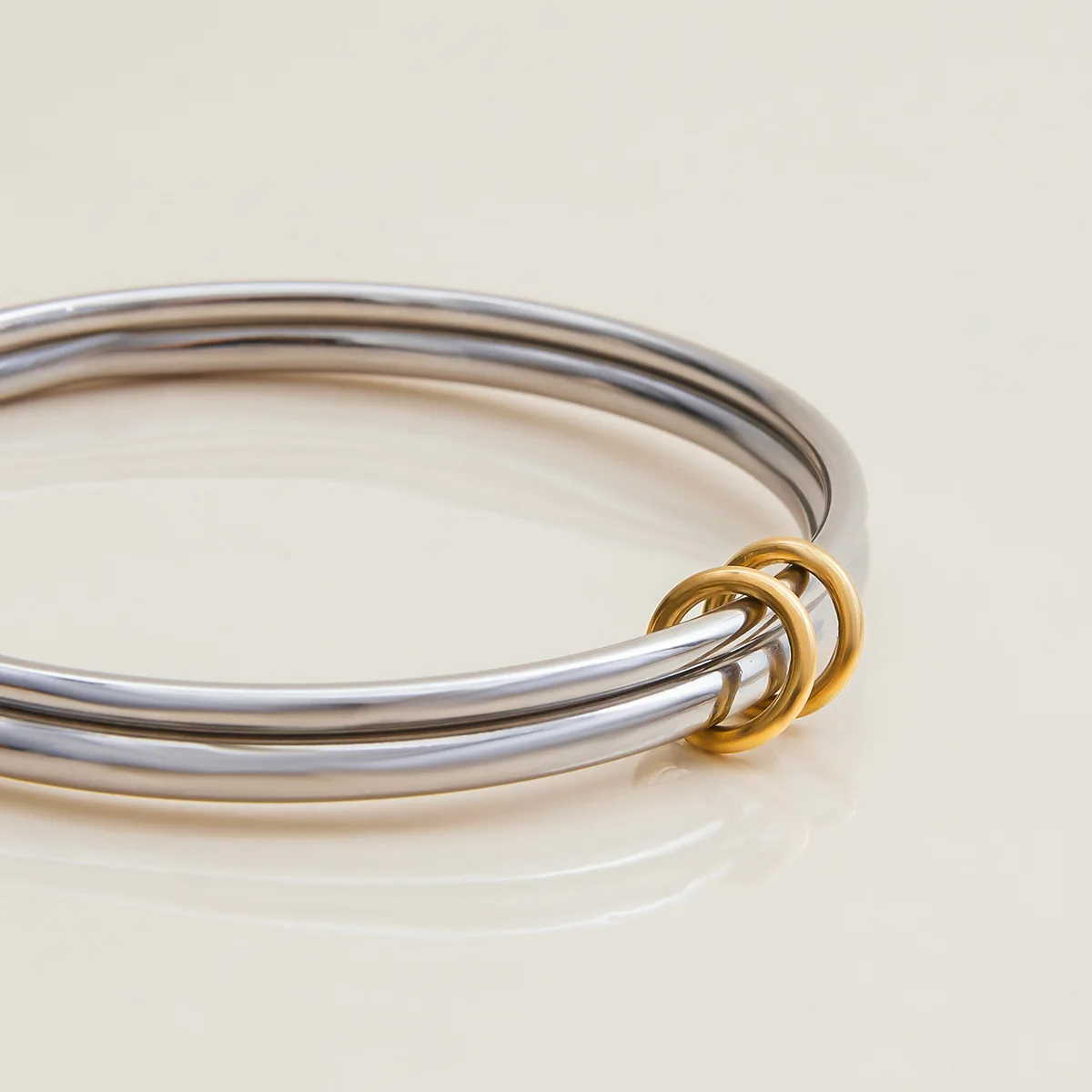 MW 18K Gold-Plated Stainless Steel Bangle Classic and Fashionable Two-Tone Wrist Jewelry