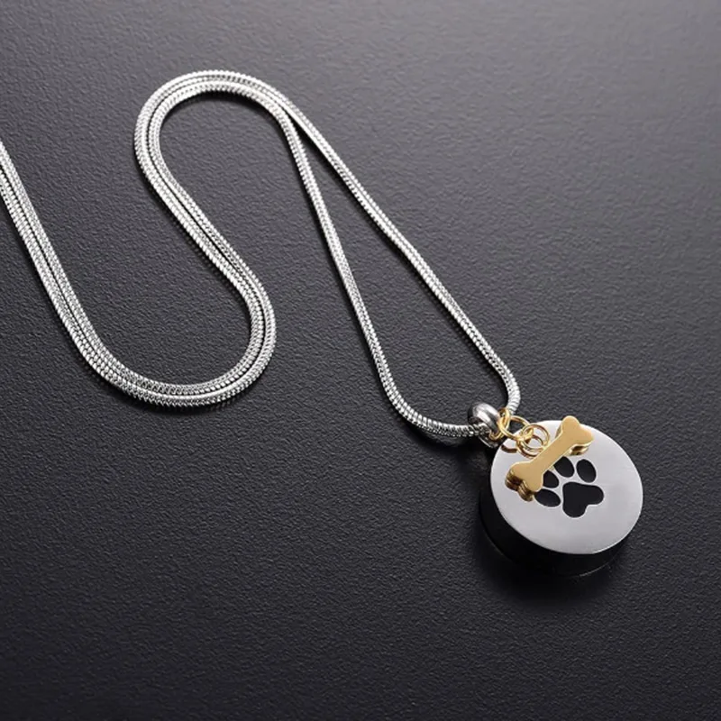 MW Classic Cat Dog Pet Bone Stainless Steel Claw Print Ashes Necklace Perfume Bottle Pendant Urn Memorializing Loved Anniversary