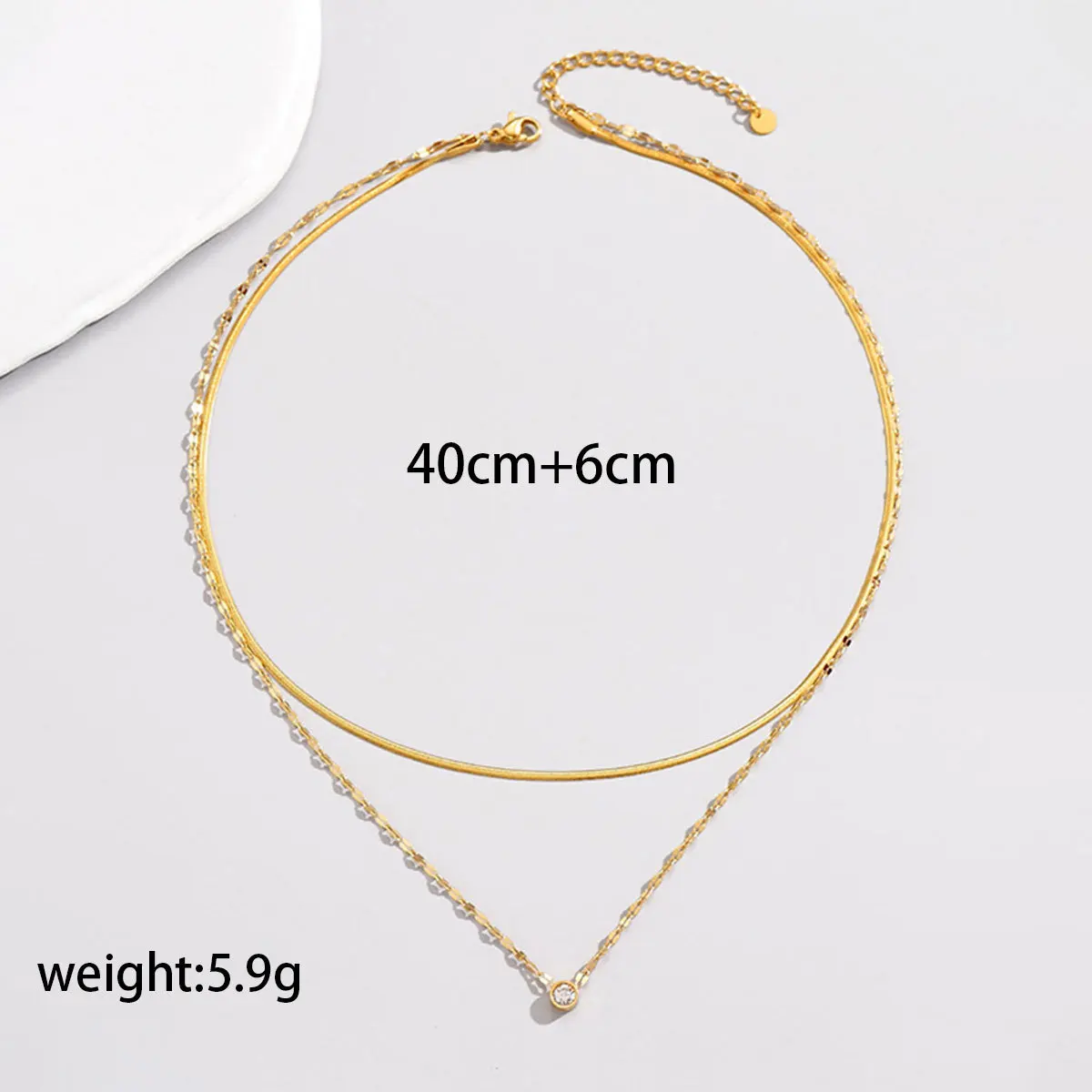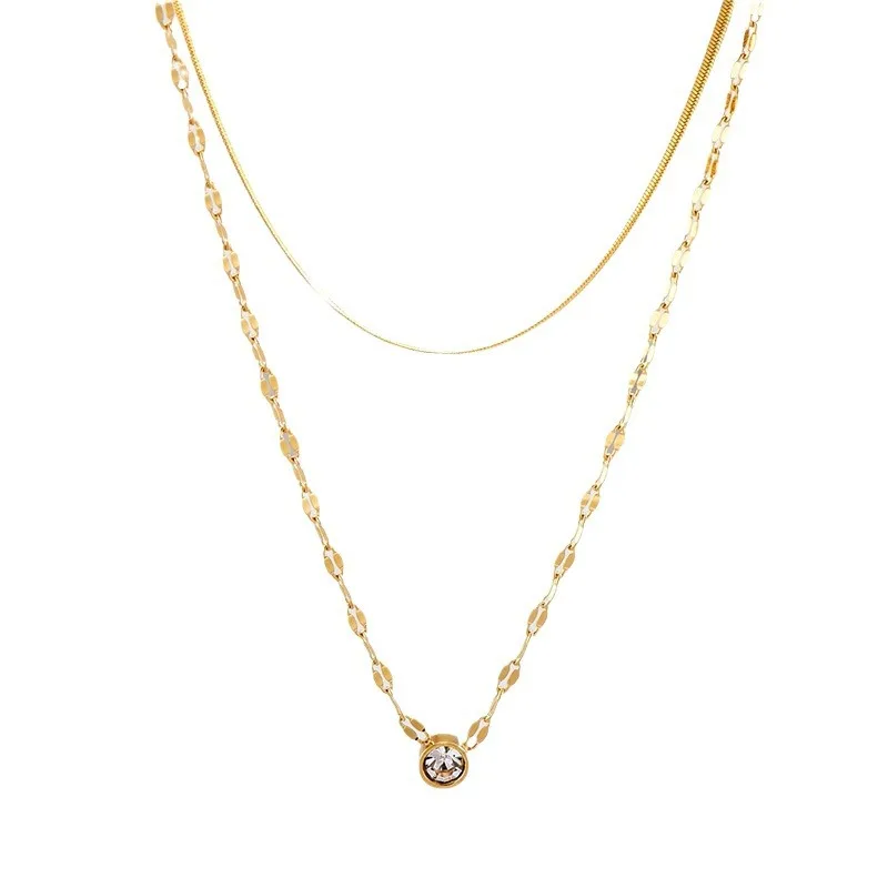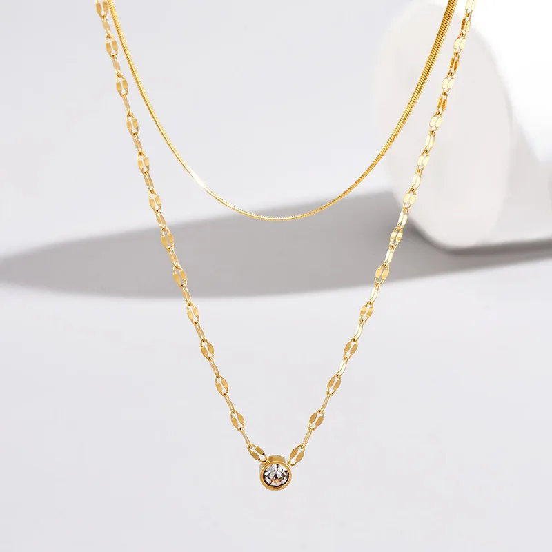 MW Trendy 18k Gold Plated Water Droplet Shaped Pendant Geometric Design Stainless Double-Layered Chain Necklace for Women