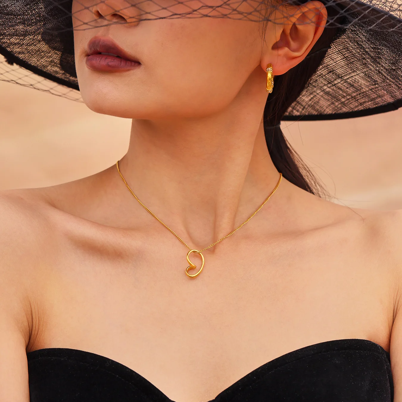 MW Fashion Christian 18K Gold Plated Stainless Steel Heart Shaped Pendant Link Chain Necklace for Women Gift