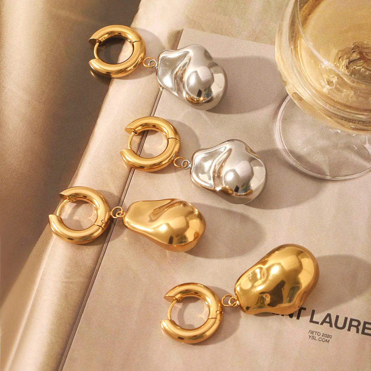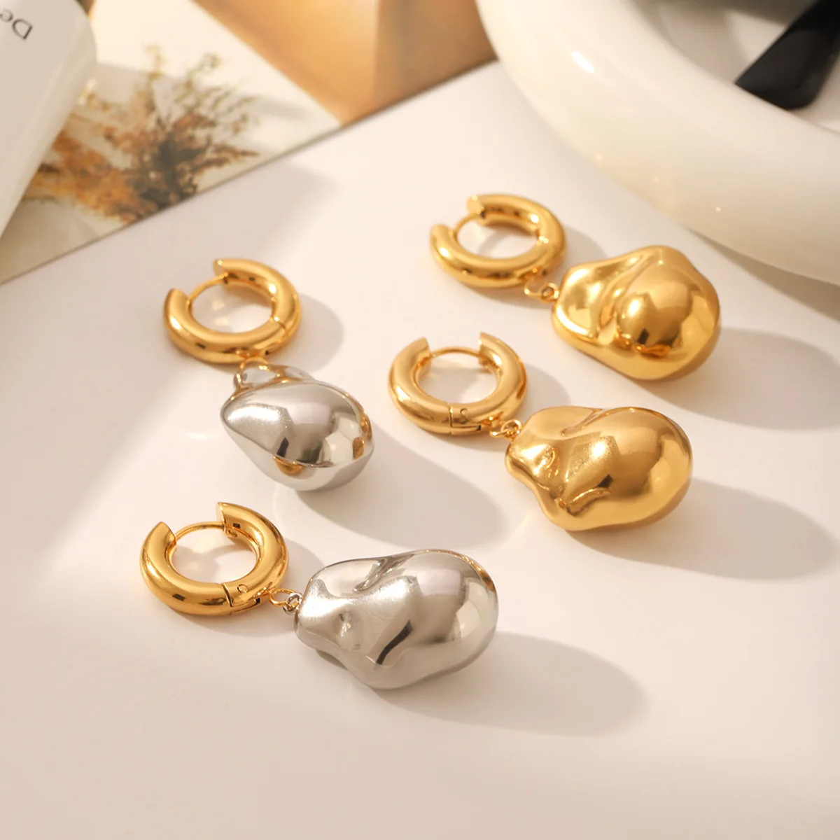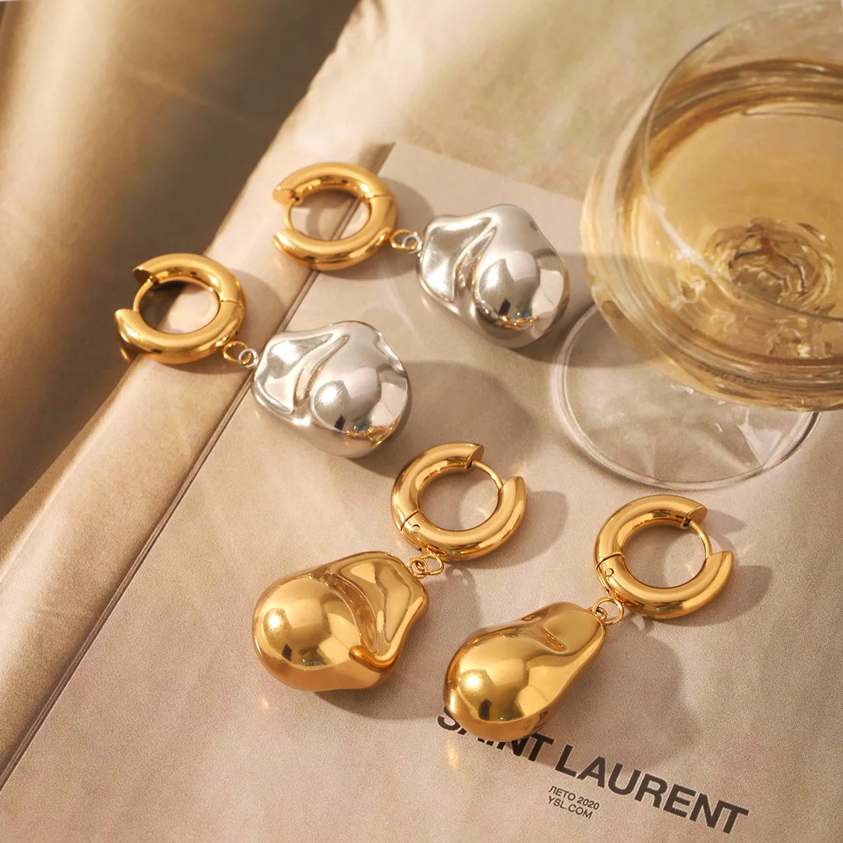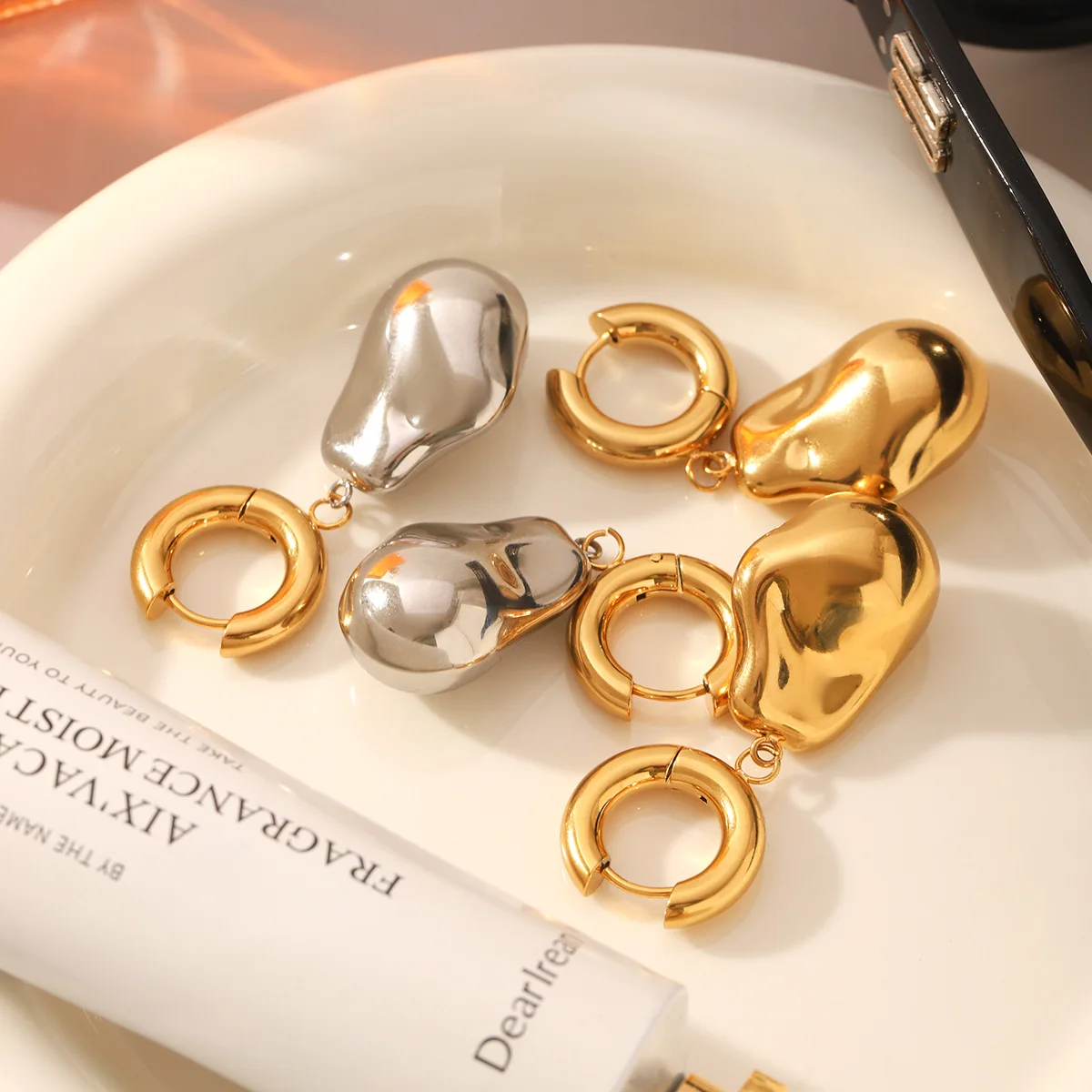 MW Modern Minimalist 18K Gold Stainless Steel Two Tone Simple Special-shaped Steel Bead Pendant Earrings