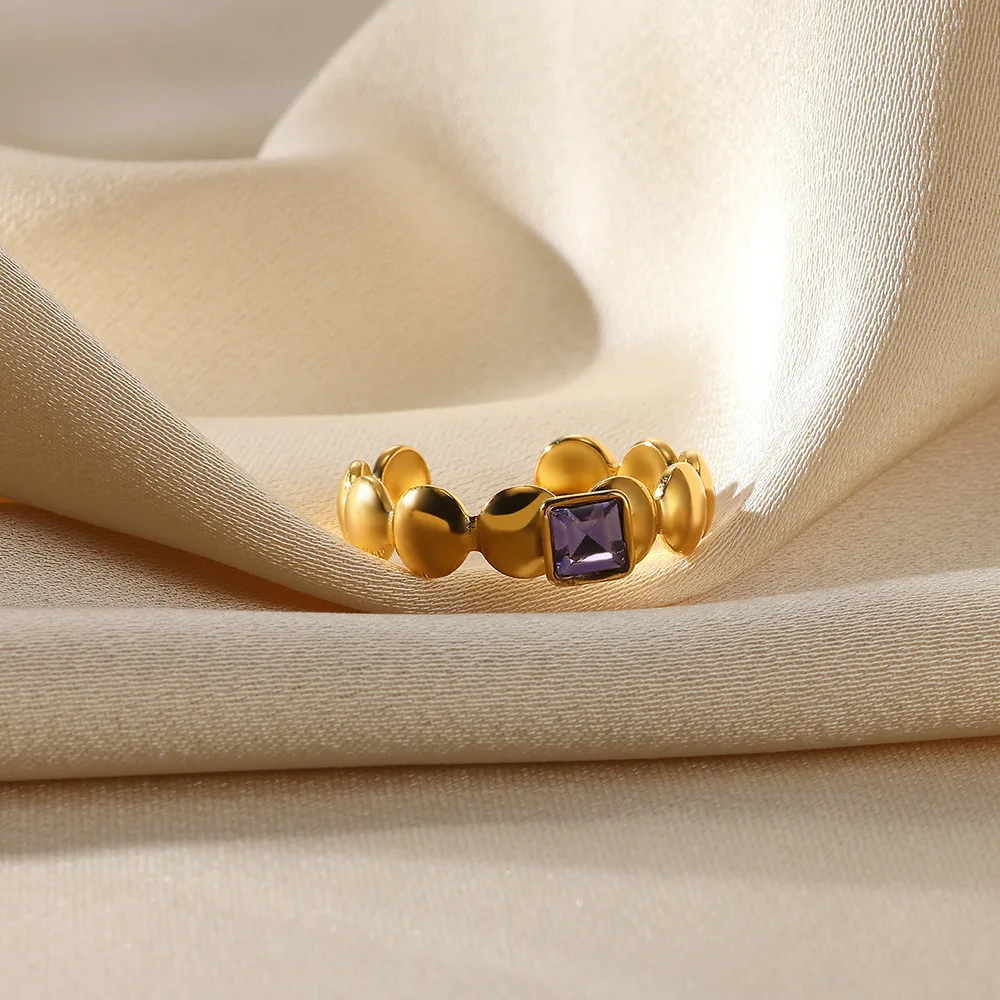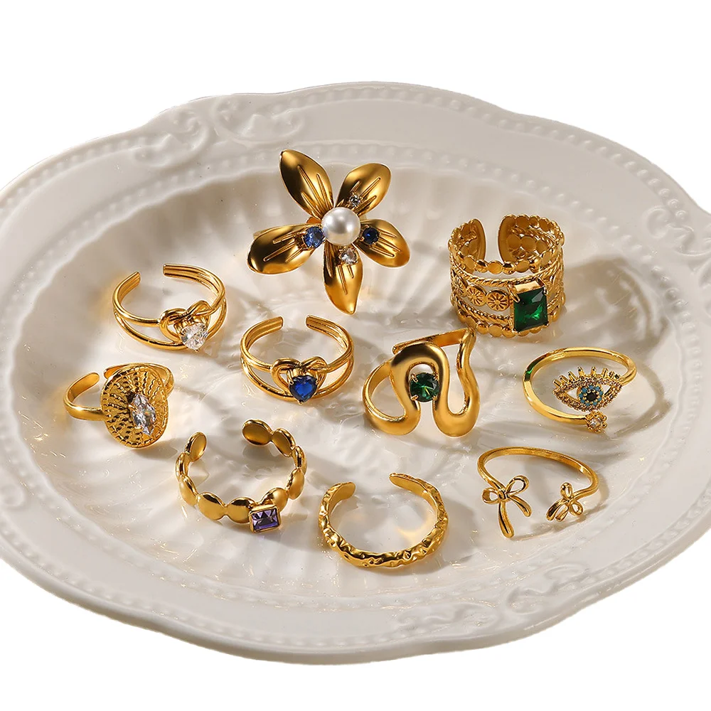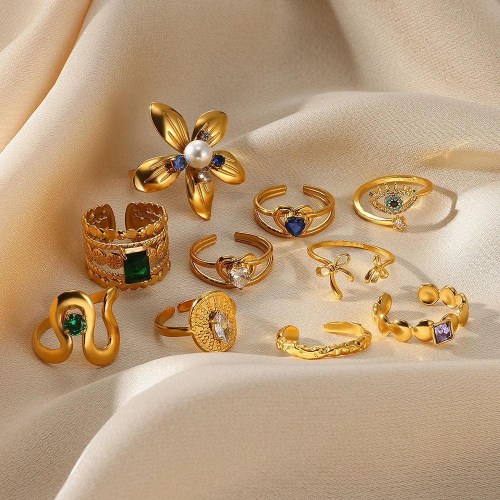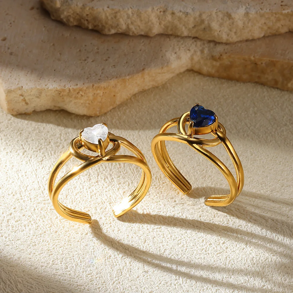 MW Women's Fashion Stainless Steel 18K Gold Plated Flower Ring Sapphire Emerald Zircon Heart Ring Wedding Jewelry Gift