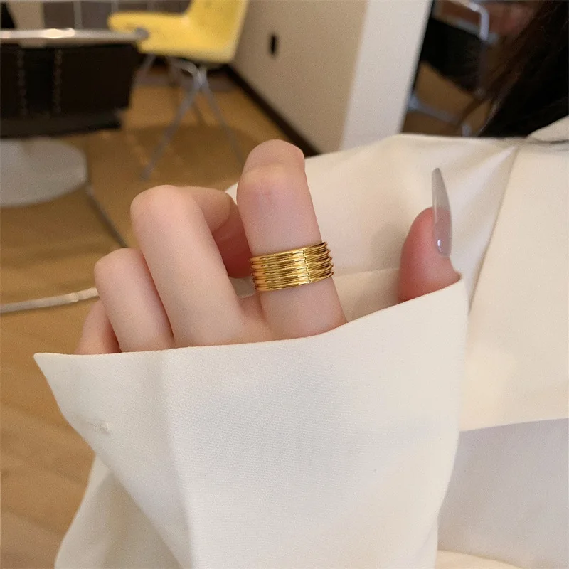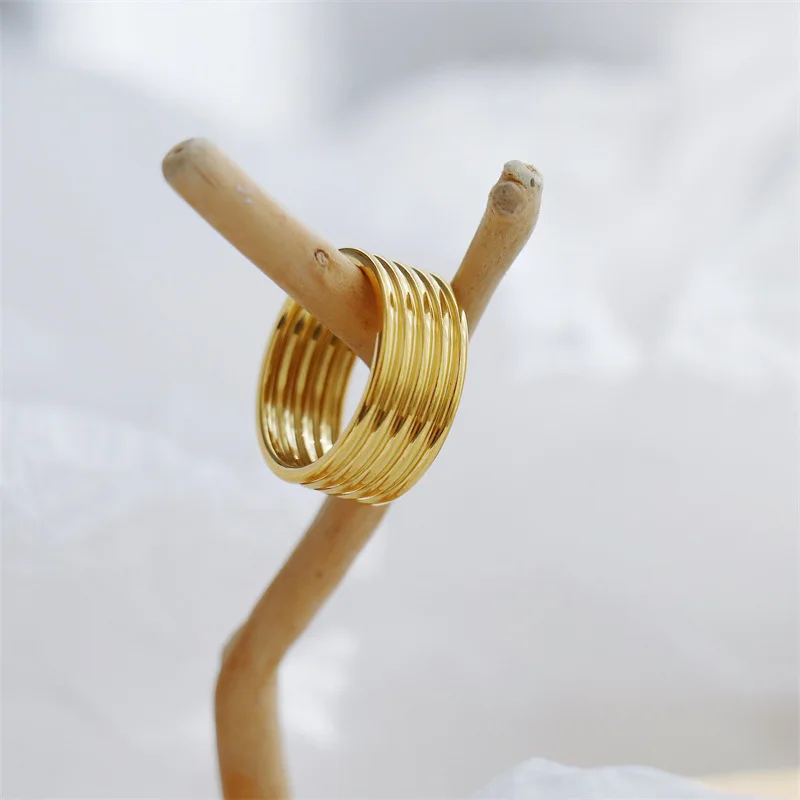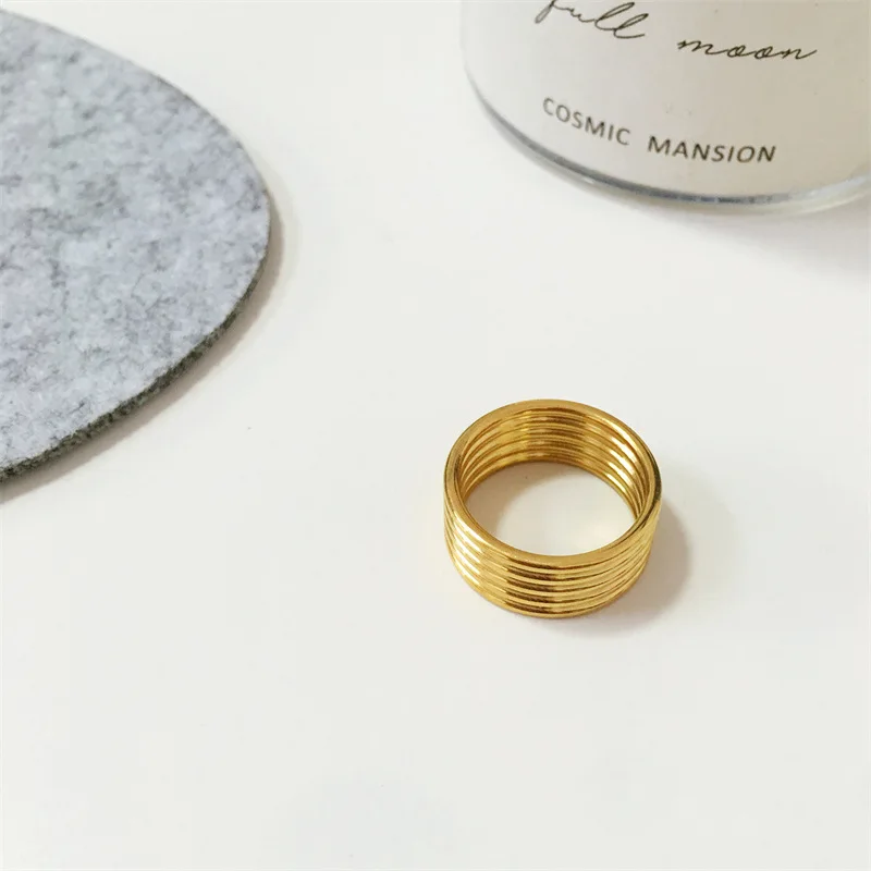MW High End 18K Gold Plated Stainless Steel Layered Chunky Band Rings for Women Rings Trendy Simple Gold Plated Jewelry