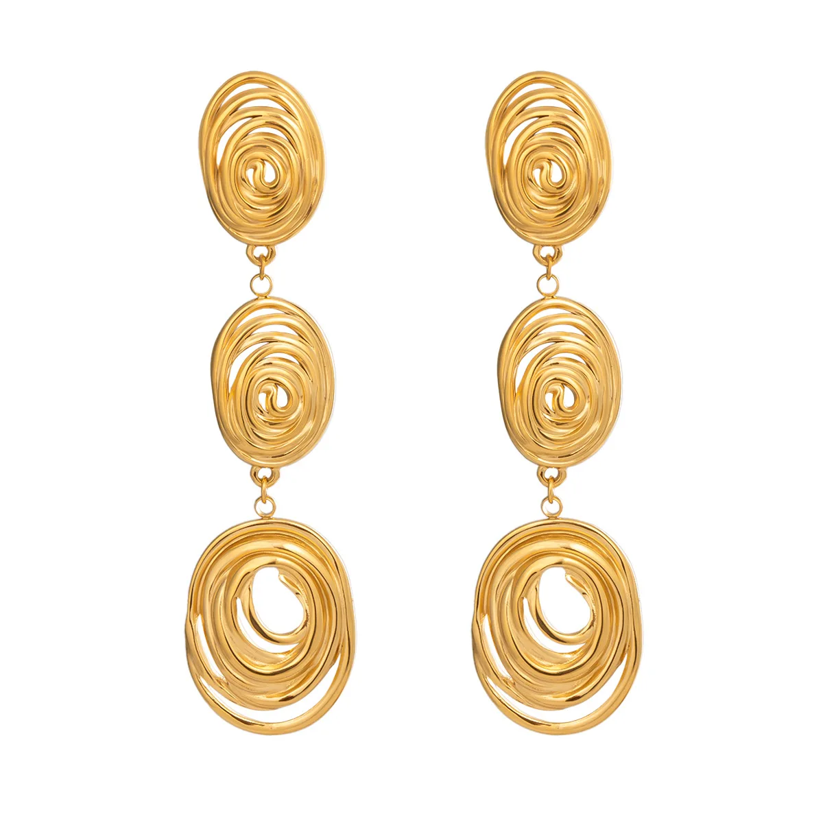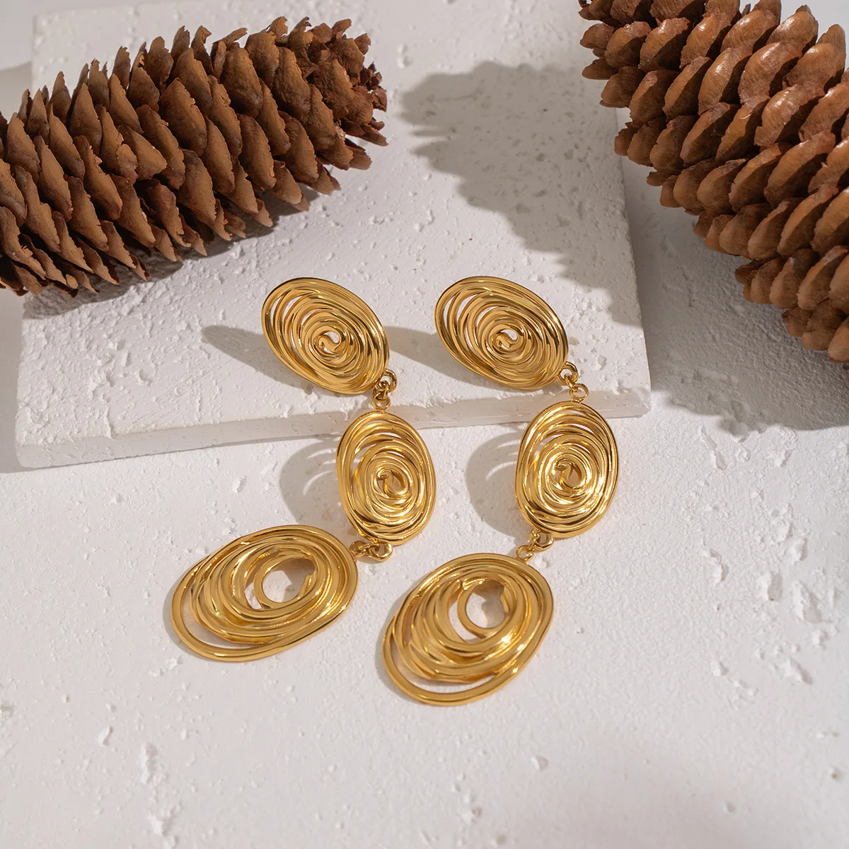 MW 18K Gold-Plated Stainless Steel Drop Earrings: Long Cast Charm Dangle Style, Waterproof Statement Jewelry for Parties