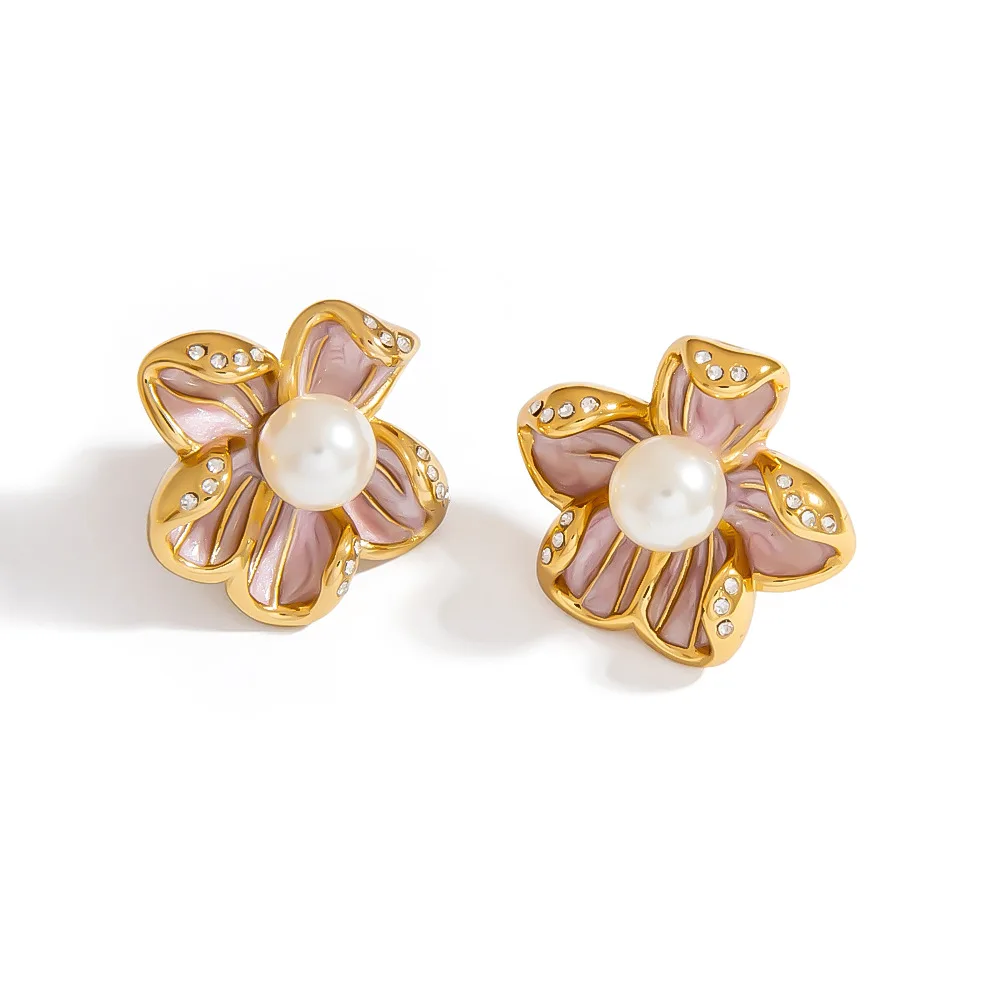 MW Trendy Personalized 18K Gold Plated Stainless Steel Diamond Earrings Non-Fading Floral Fashion Jewelry From Manufacturer