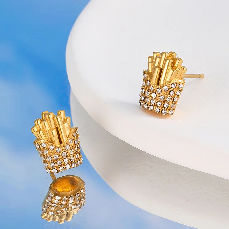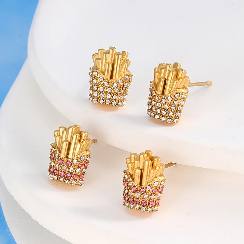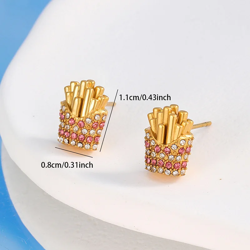 MW Cute Link Shape Pendant Earring New 18K Gold Plated Stainless Steel Stud Shining Zircon with Vintage Style Trendy Party Gift