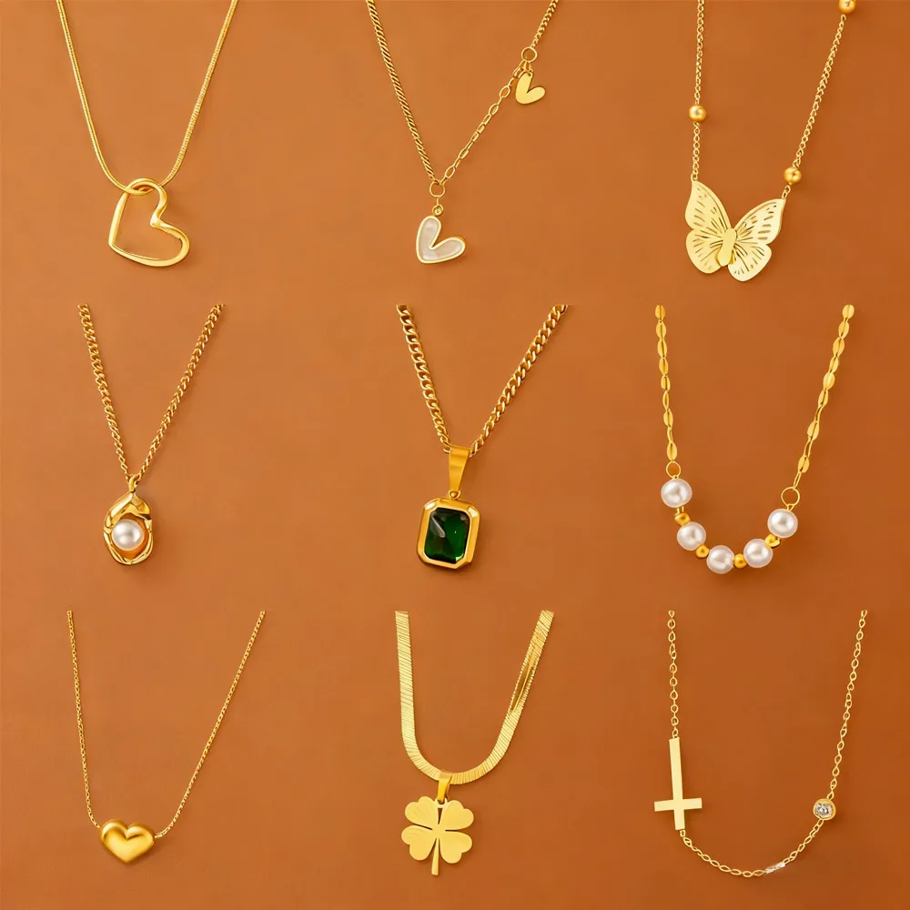 MW Non Tarnish 18k PVD 316l Hypoallergenic Shell Heart Butterfly Roman Numerals Stainless Steel Necklace Gold Plated Jewelry