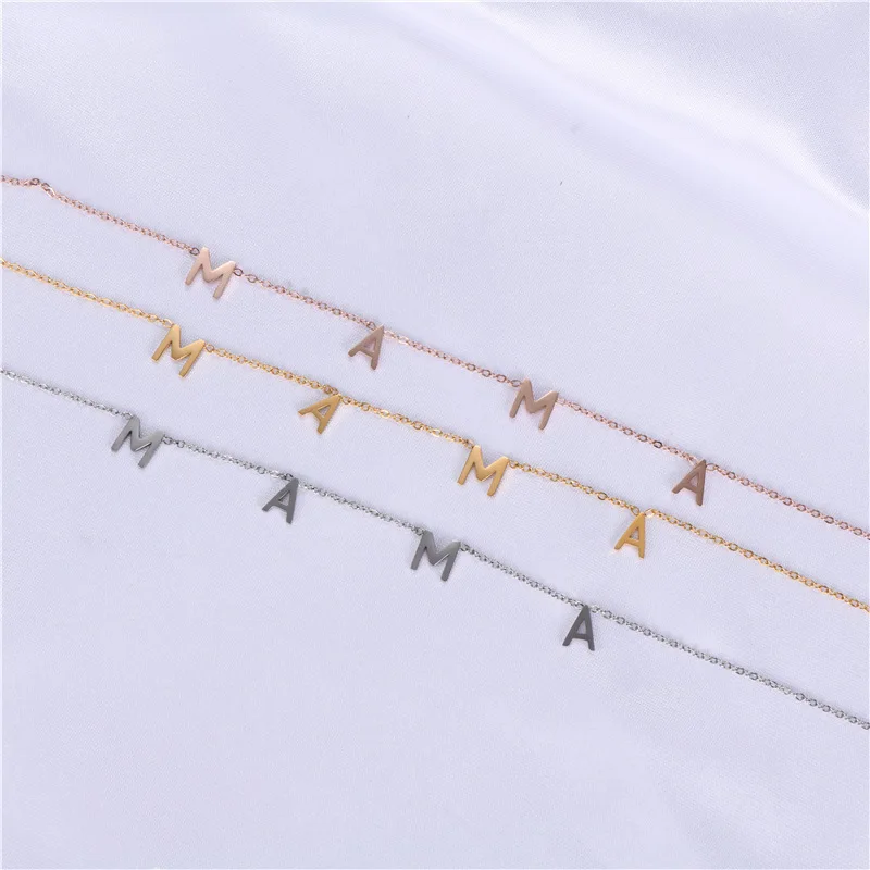 MW Wholesale 18K Gold-Plated Stainless Steel Mom Letter Necklace: Tarnish-Free & Waterproof Best Wish Mom Gift