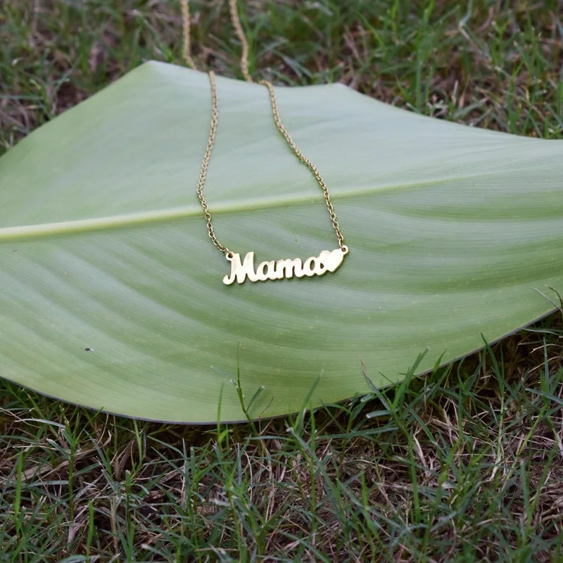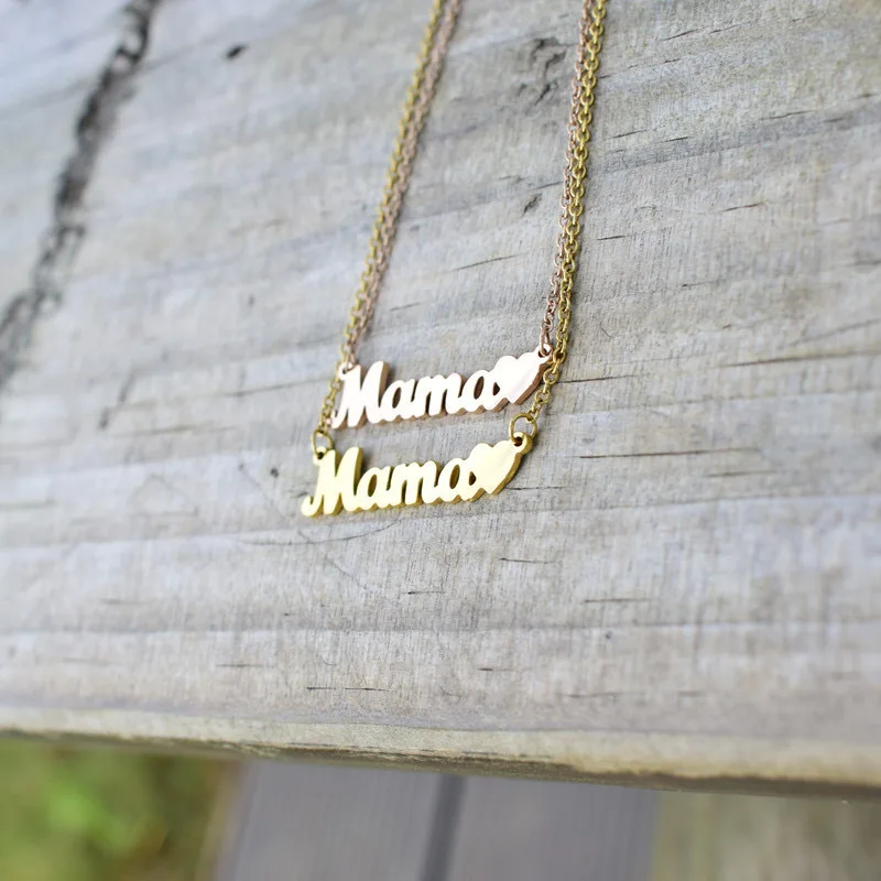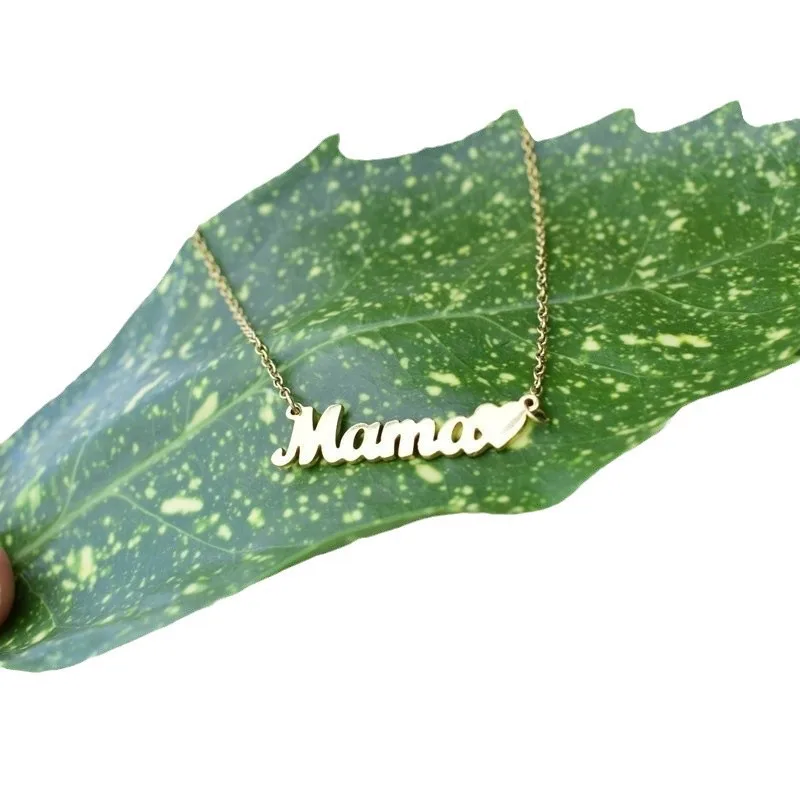 MW Fashion Custom 18K Gold-Plated Stainless Steel Name Heart Letter Choker: Mama Pendant Necklace for Mom Gifts