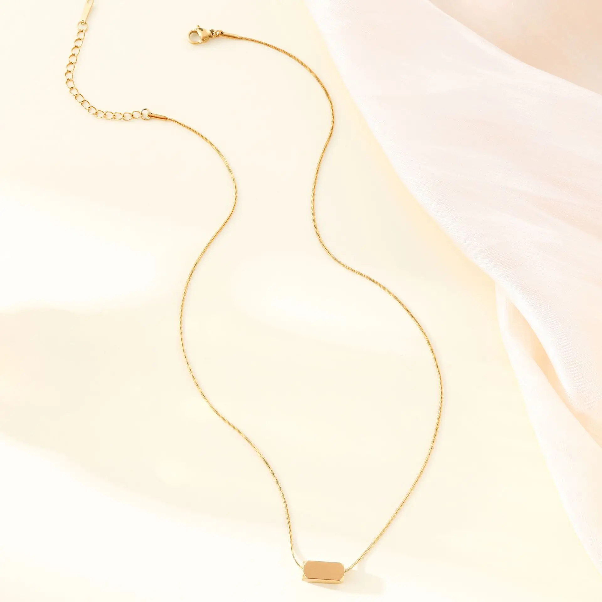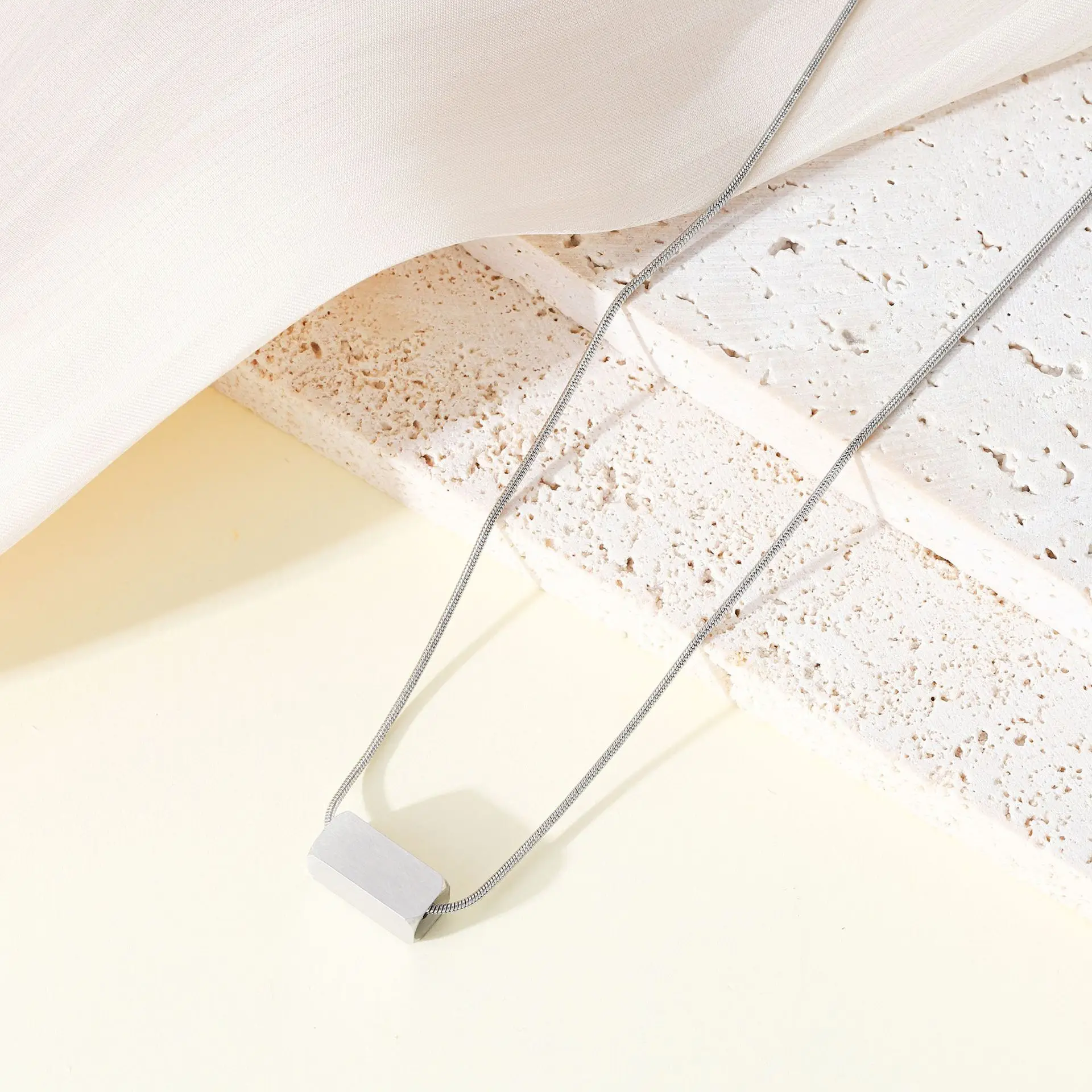 MW Minimalist Geometric Horizontal Bar Pendant Necklace: Elegant 316L Stainless Steel Modern Jewelry for Women