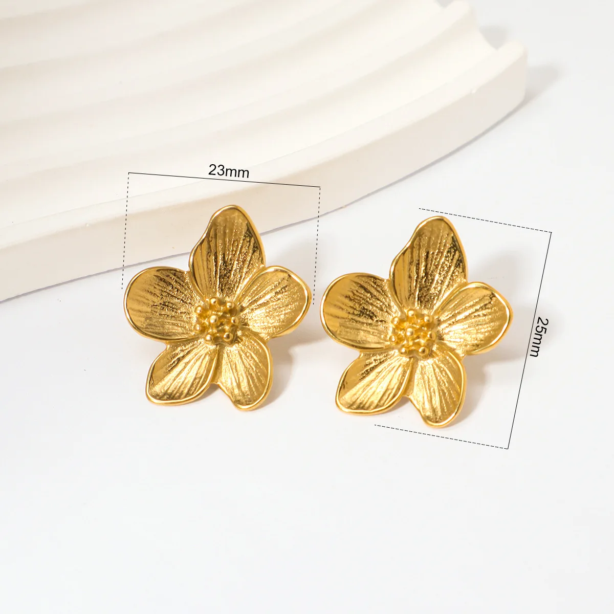 MW Dingran 18K Gold-Plated Stainless Steel Earrings: Fashion Engraved Flower Design Elegant Jewelry