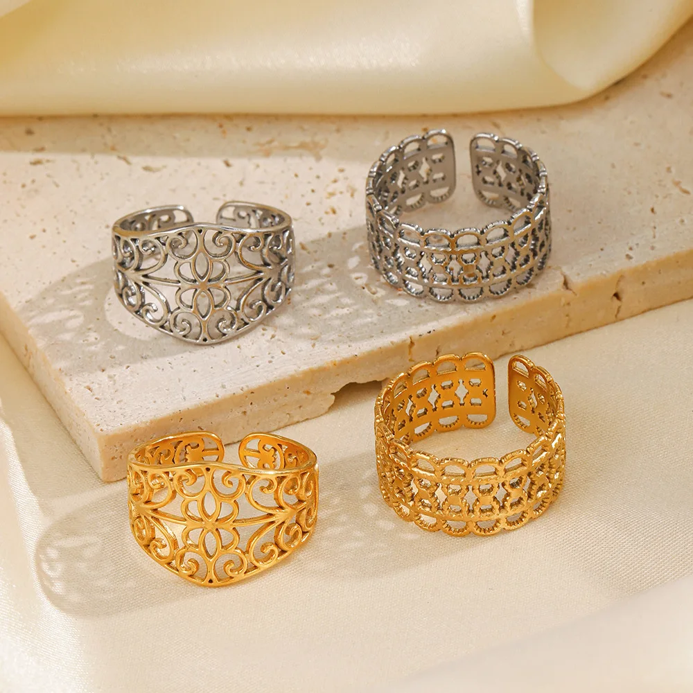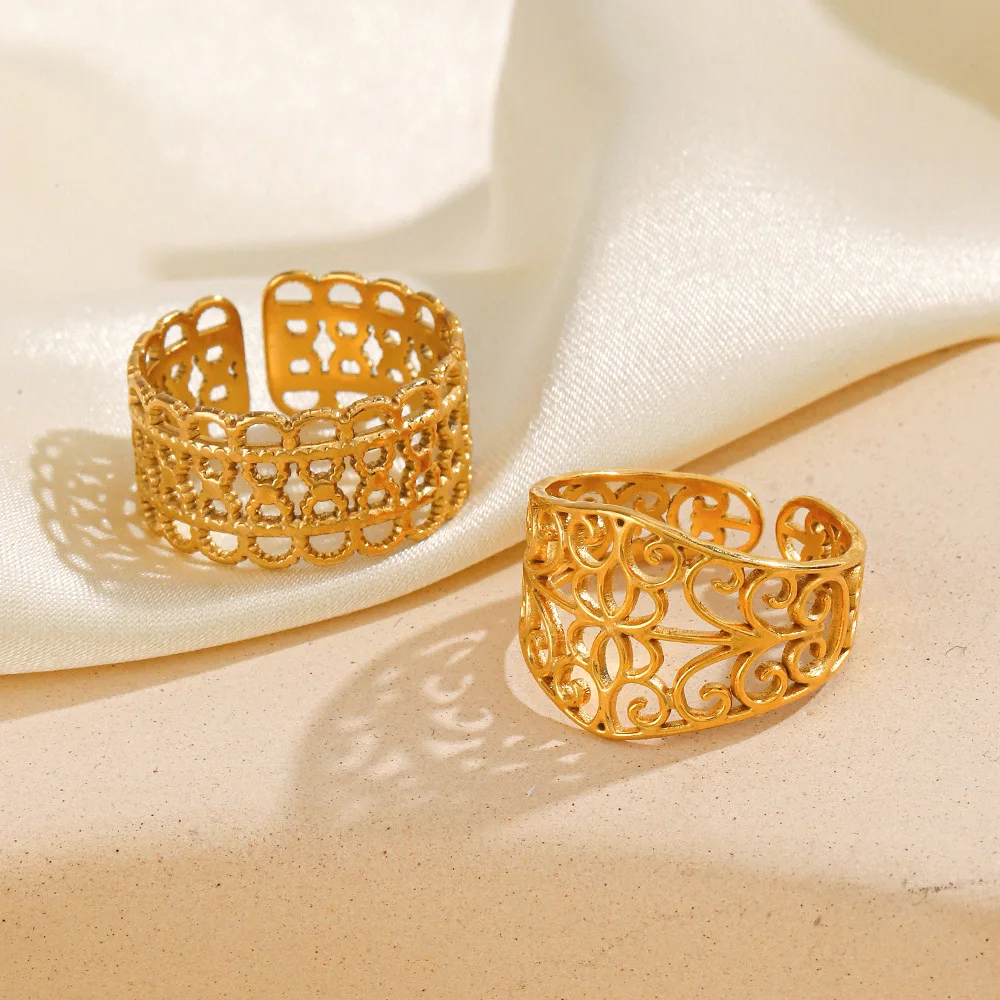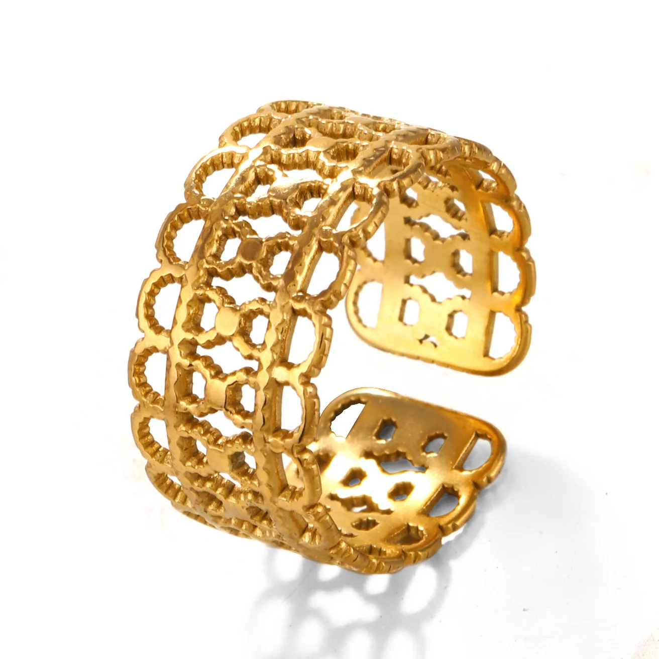 MW Gold Plated 18k Stainless Steel Resizable Ring Elegant Waterproof Jewelry Bijoux En Acier Inoxydable Pattern Gold Open Rings