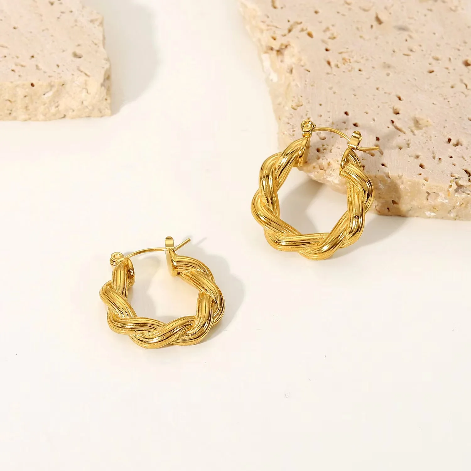MW Fashion PVD 18K Gold-Plated Stainless Steel Twisted Custom Hoop Earrings for Women: Circular Design