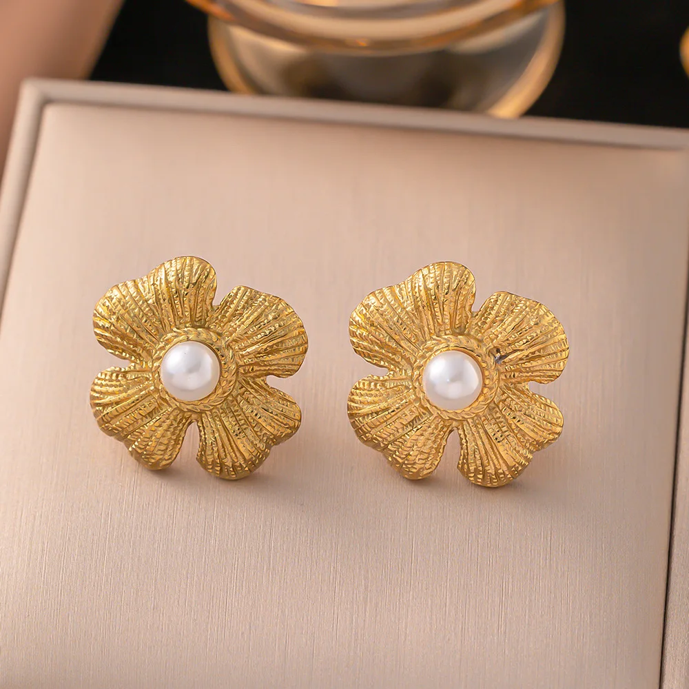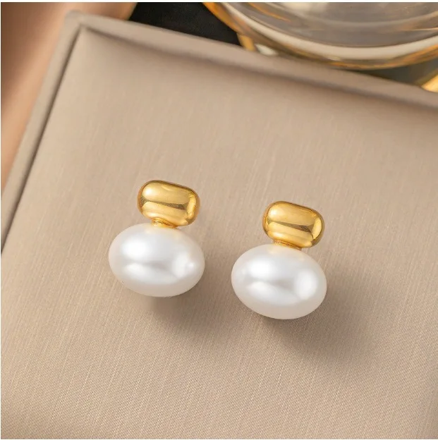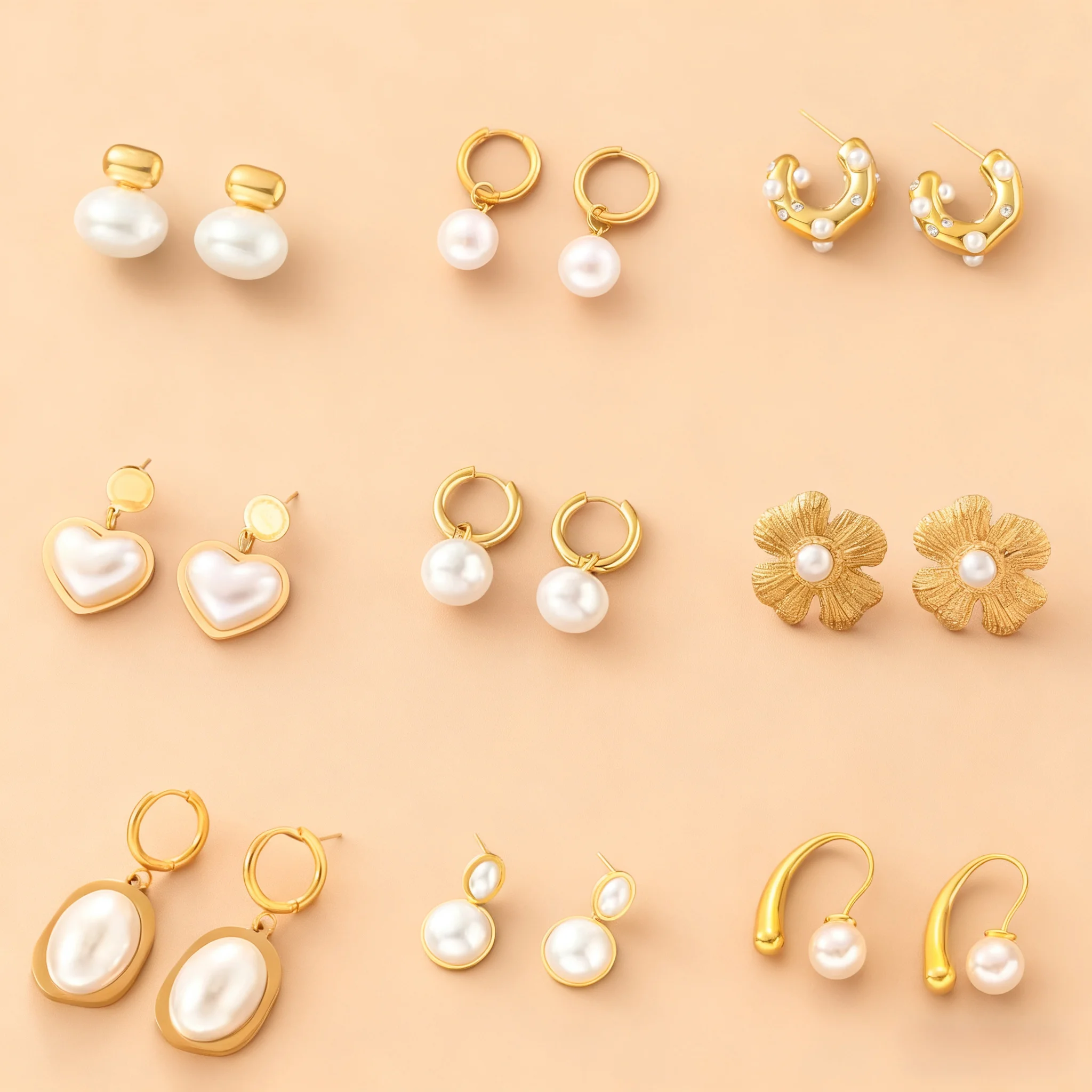 MW Fashion Fine Wholesale Dangle Hoop Earings Minimalist Stud Earrings 18k Gold Plated Stainless Steel Pearl Drop Hoop Earrings