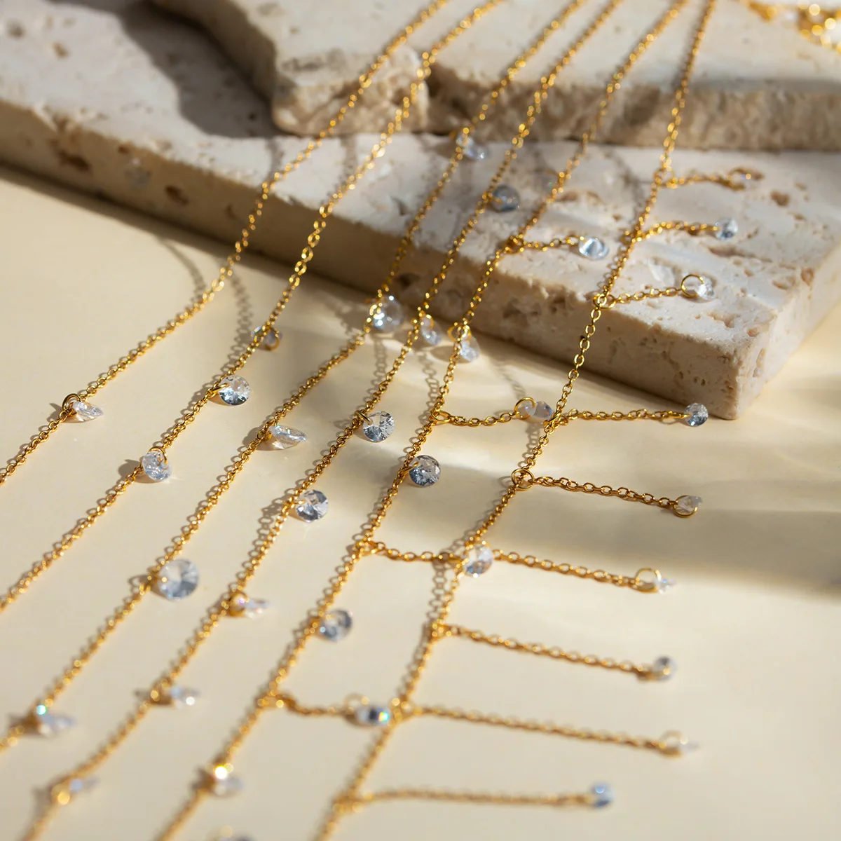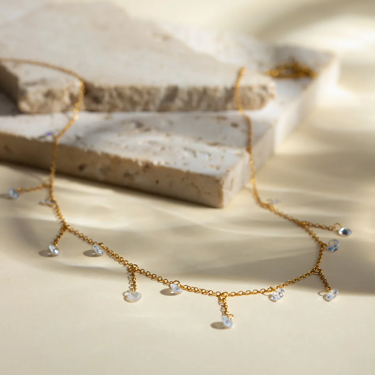 MW Minimalist 18K Gold-Plated Stainless Steel Choker: Thin Chain with Multi Small Zircon Charms