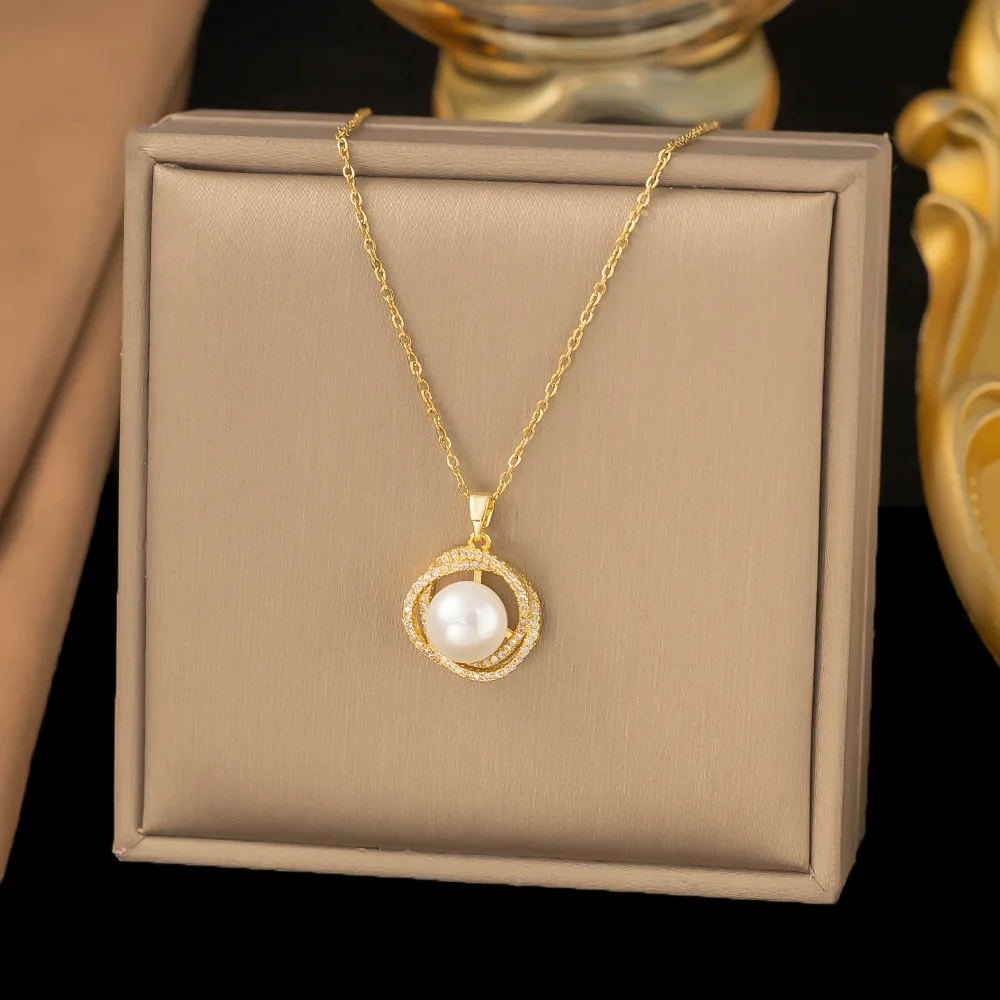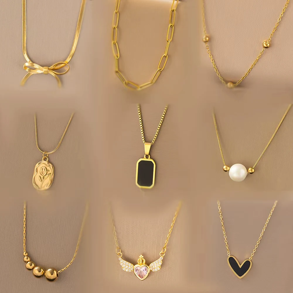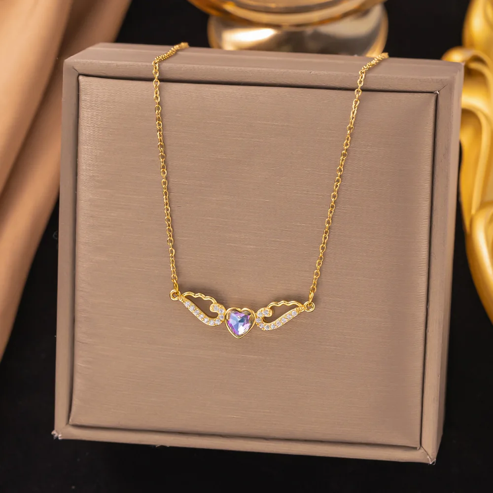 MW Luxury Anti Tarnish 316l Stainless Steel Korean Pearl Wings Heart-shape Necklace Gold Shopping for Jewelry Online Wholesale