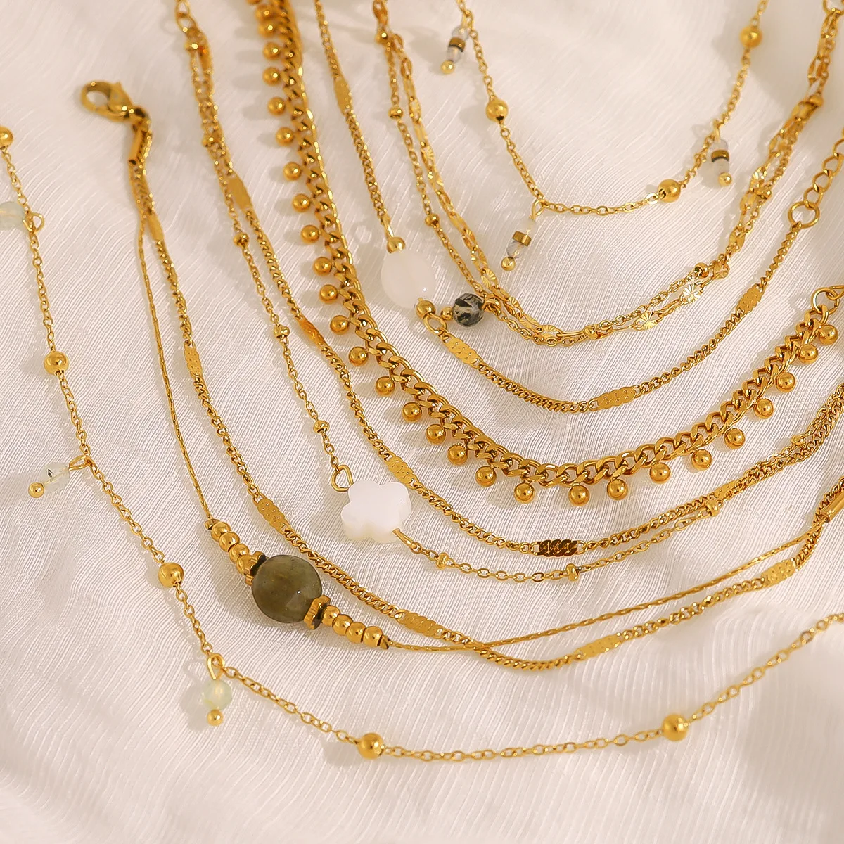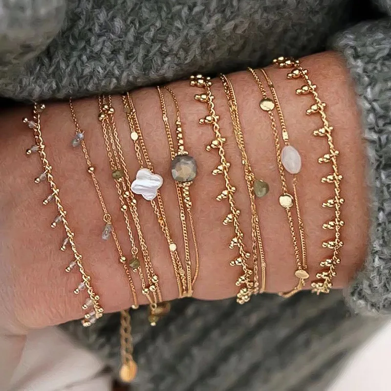 MW Wholesale Anti-Tarnish Stainless Steel Bracelet: Minimalist Natural Stone Beads & Link Chain for Women Manufacturer Direct
