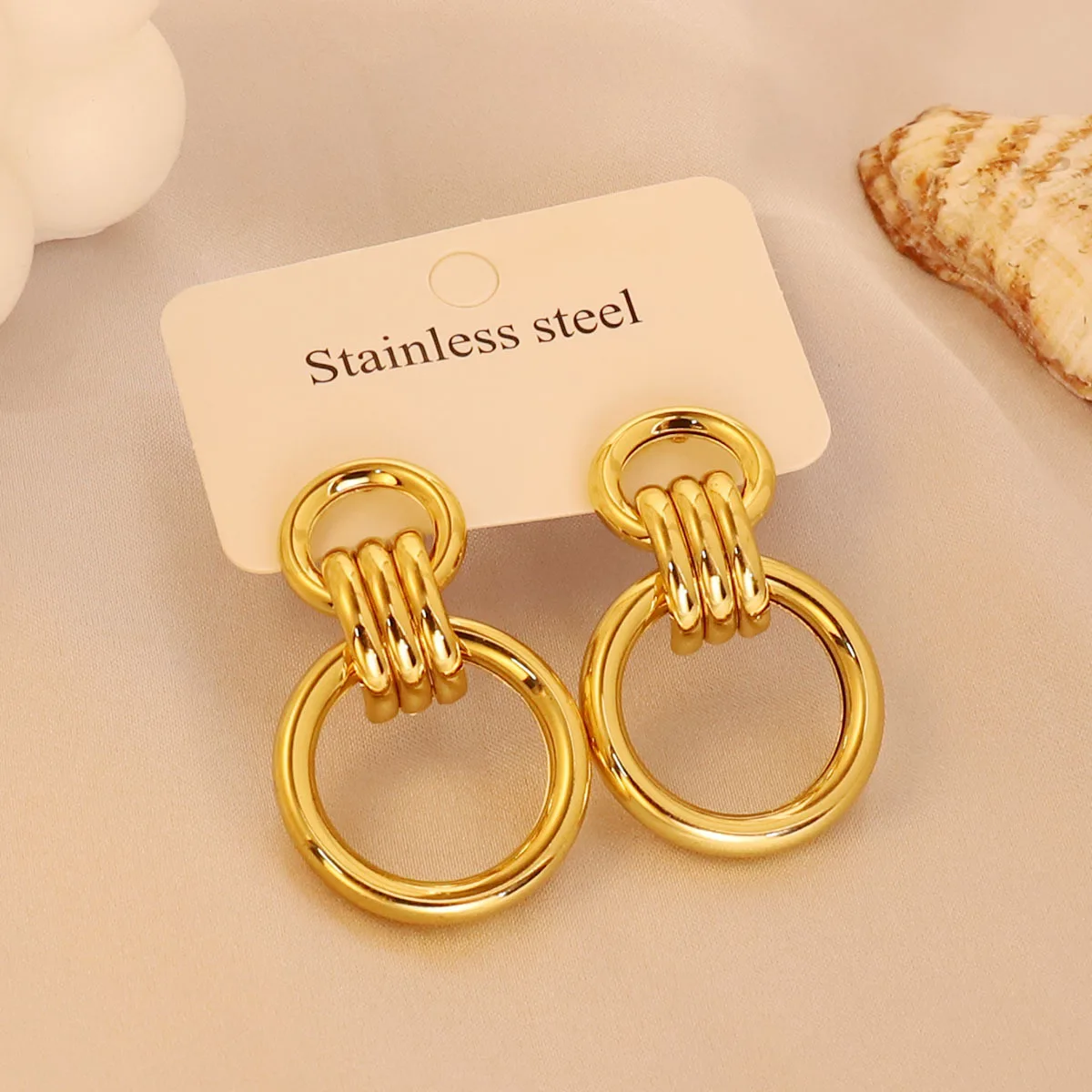 MW Wholesale Stainless Stee Gold Plated Hoop Earrings Fine Fashion 18K Gold Pendant Geometry Hoop Earing for Jewelry Women