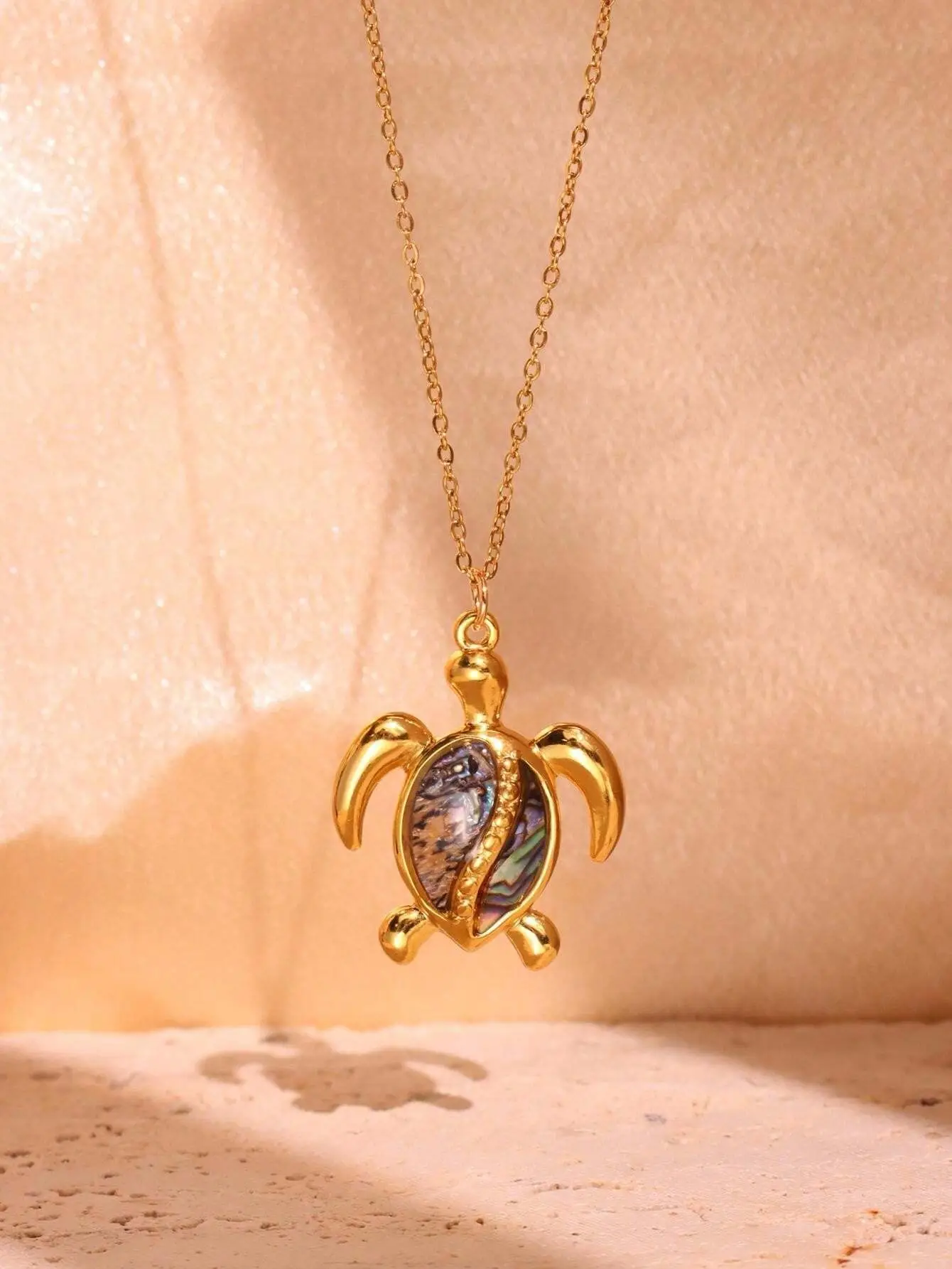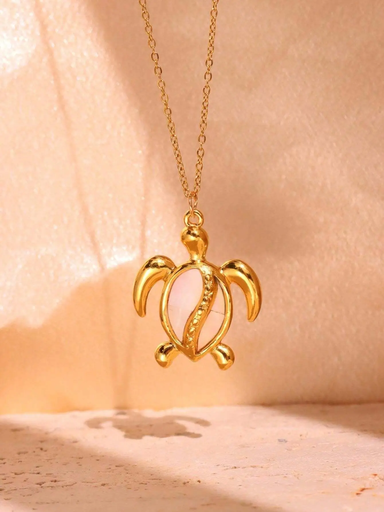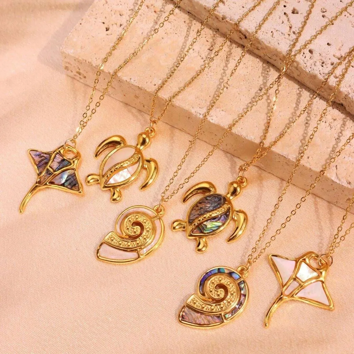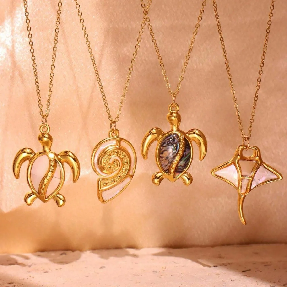 MW Wholesale Ocean Style Necklace: 18K Gold-Plated Stainless Steel, Starfish & Turtle Pendant Chain for Women