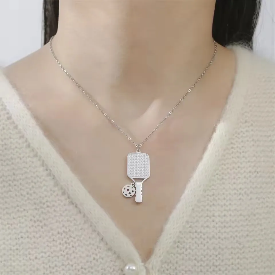 MW Wholesale Pickleball Necklace: Sport Stainless Steel Pendant, Tarnish-Resistant Unisex Jewelry