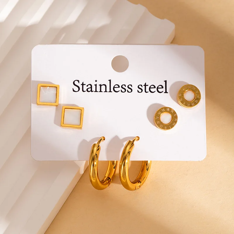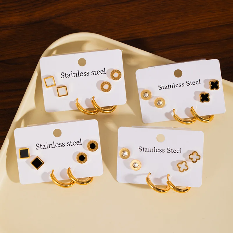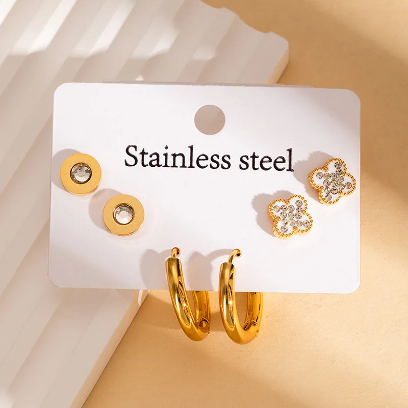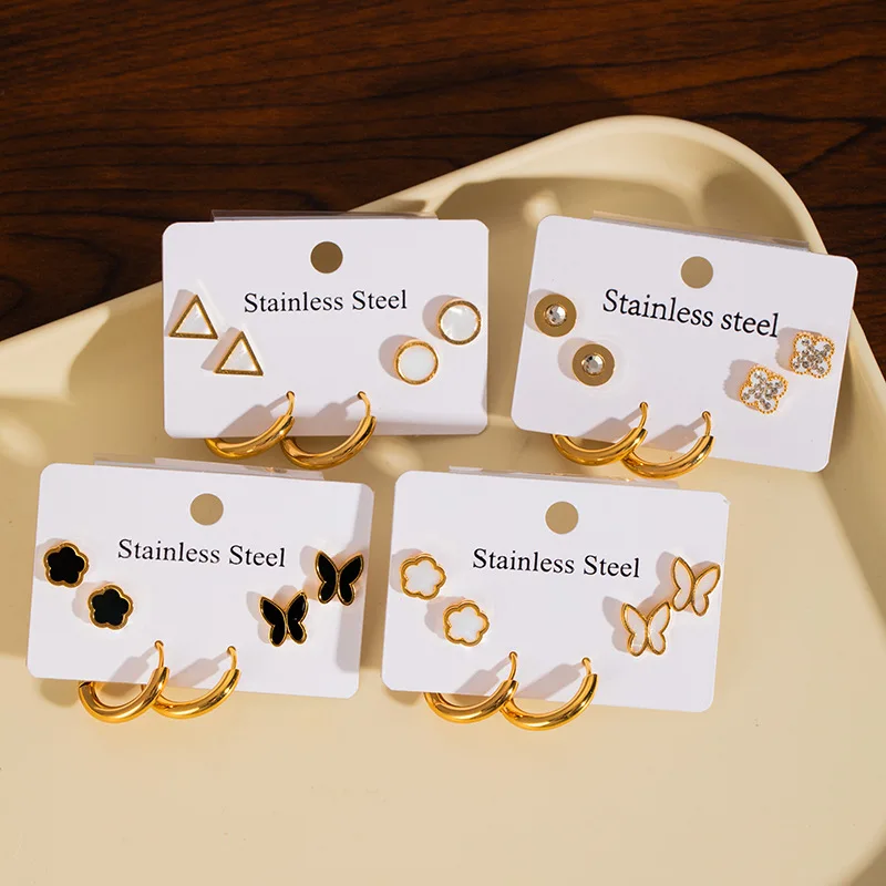 MW Trendy Fine Non-Fading Earrings Wholesale Stainless Steel Four-Leaf Clover Five-Petal Flower Butterfly Stud Earrings Set
