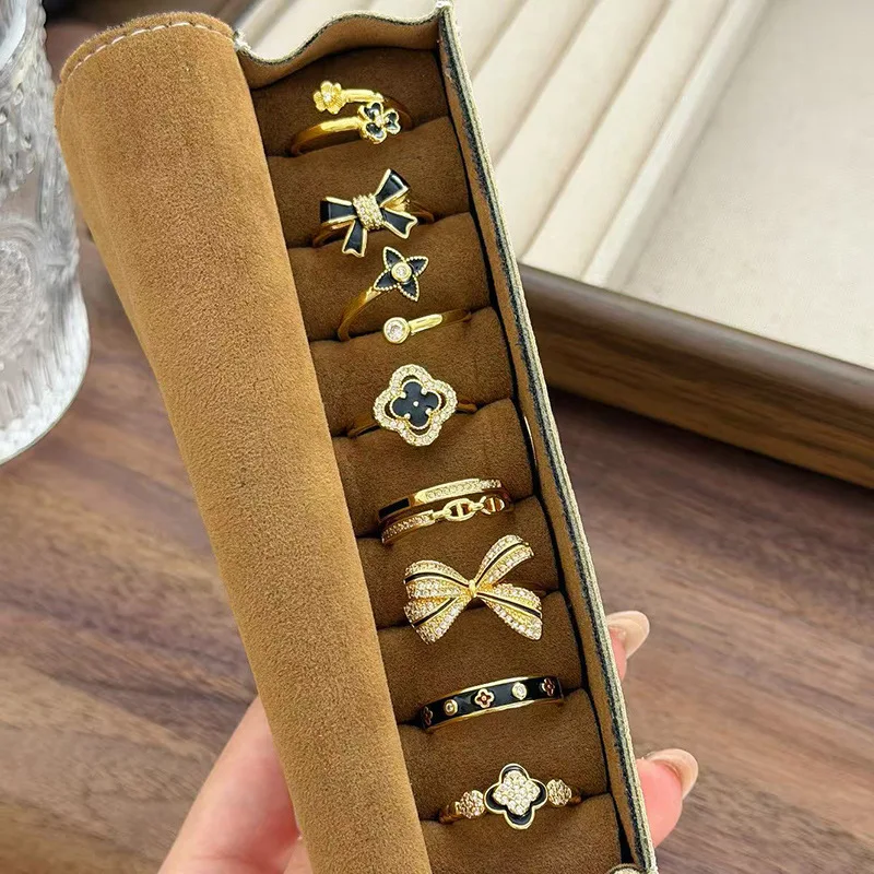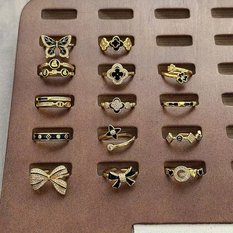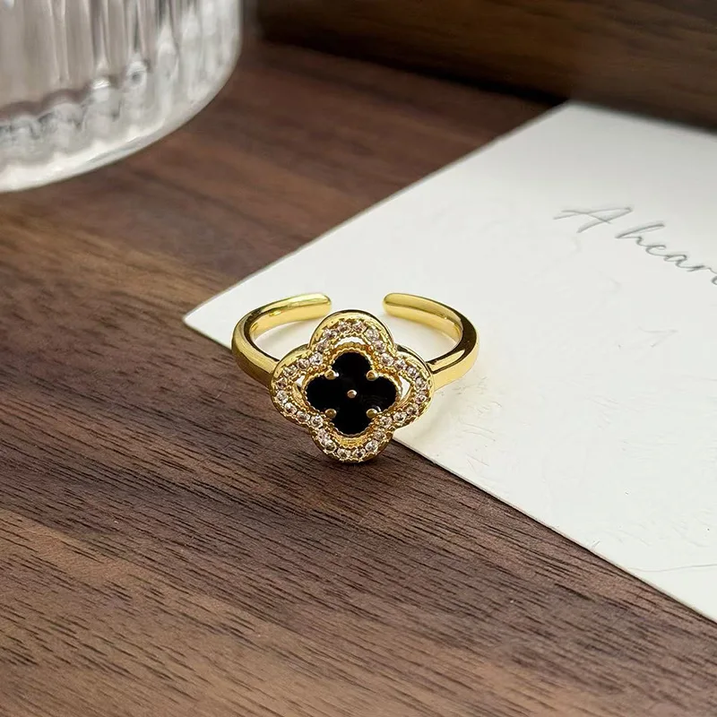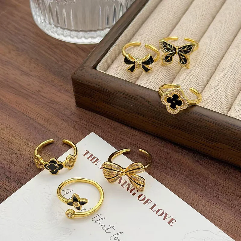 MW Trendy New Stainless Steel butterfly Gold Plated Black Four Leaf Clover Adjustable Rings Black-themed Butterfly Knot Ring