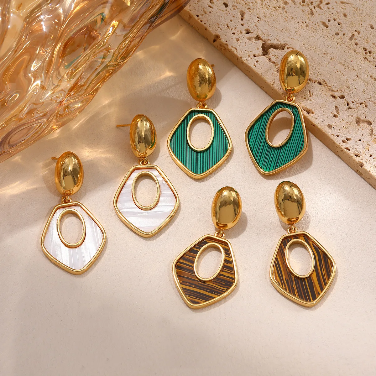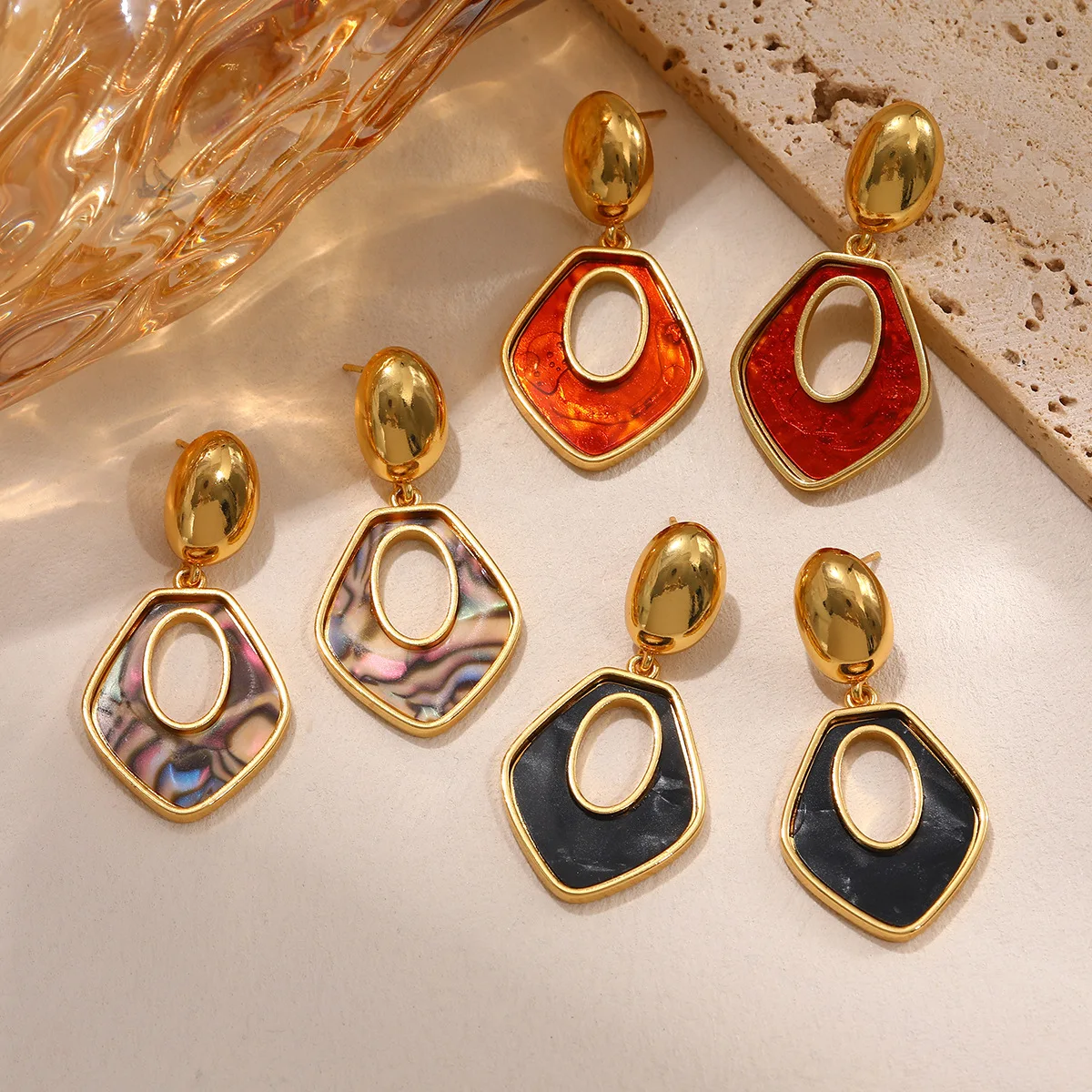 MW Wholesale Waterproof Water Drop Earrings 18K Gold Stainless Steel Simple Design Geometric Colorful Big Drop Earrings