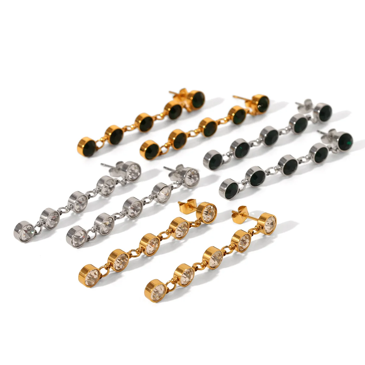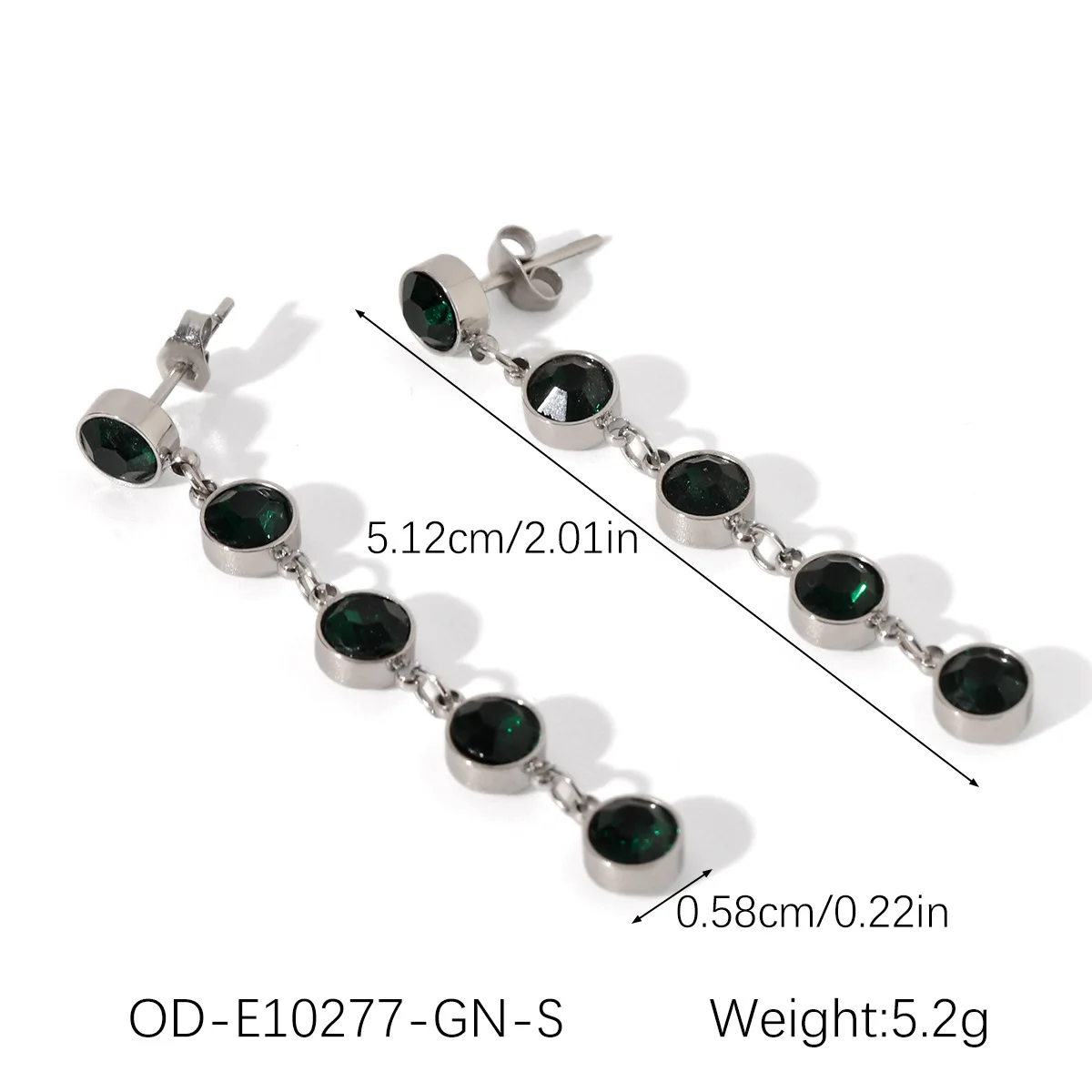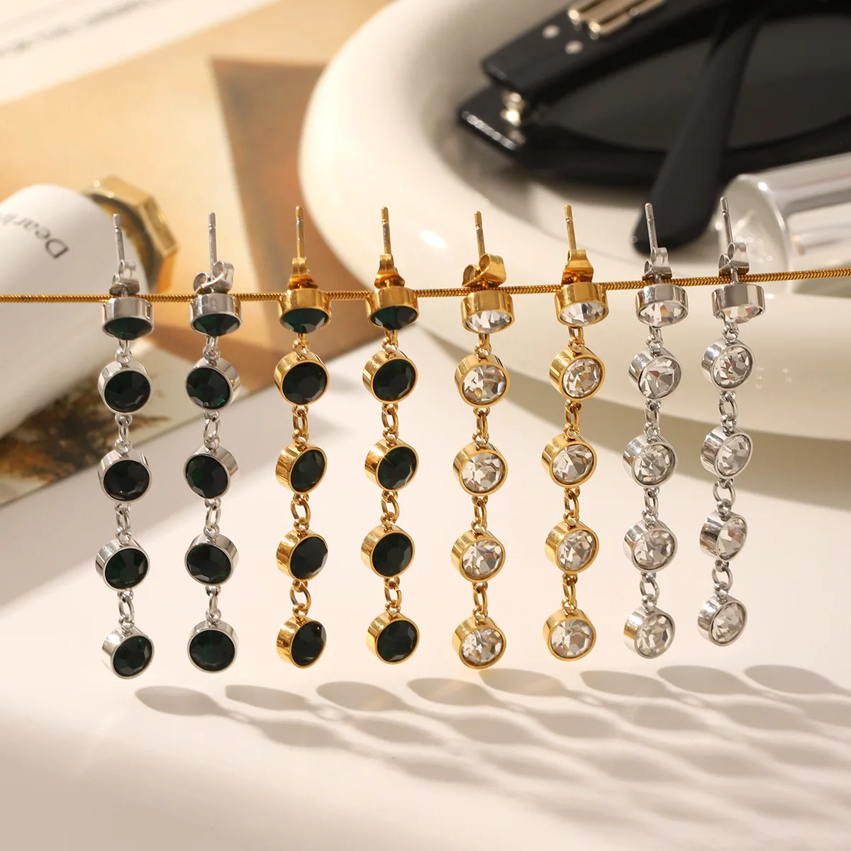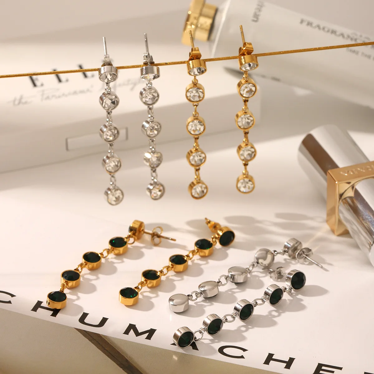 MW Trendy New 18K Gold Plated Stainless Steel Enamel Feather Shape Zircon Long Drop Tassel Women's Earrings for Party