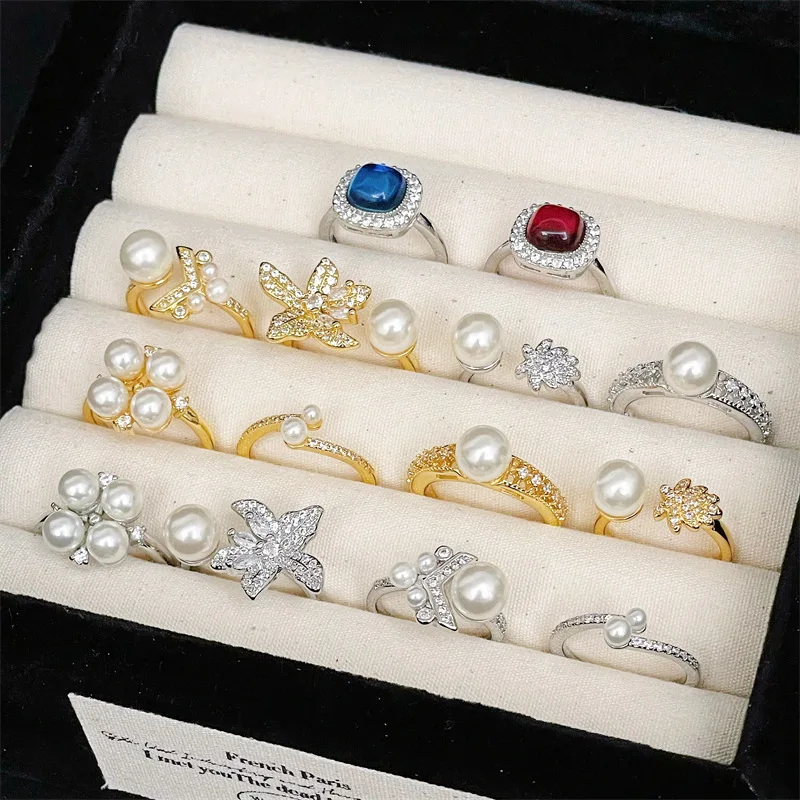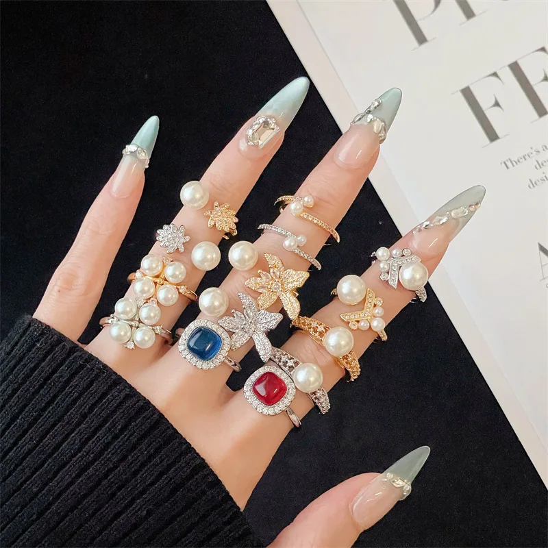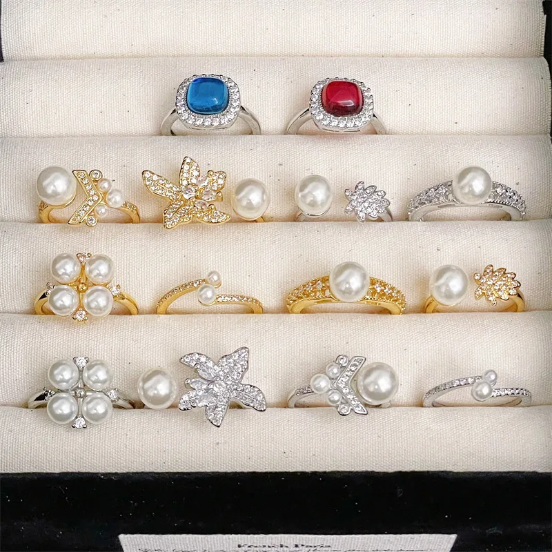 MW Trendy New Stainless Steel Freshwater Pearl Opal Wedding Ring for Women Butterfly Flower Geometric ZIRCON Natural Stone Ring