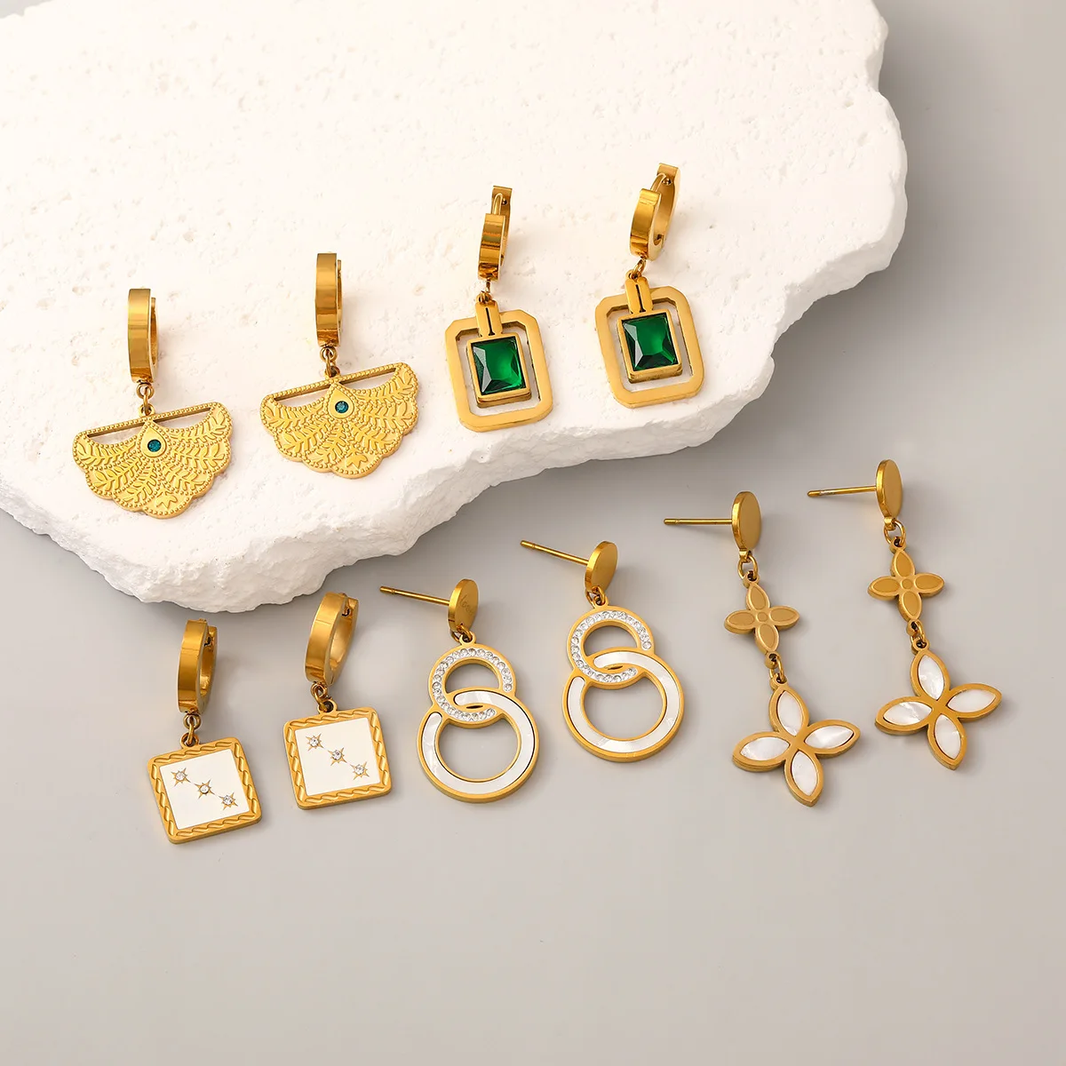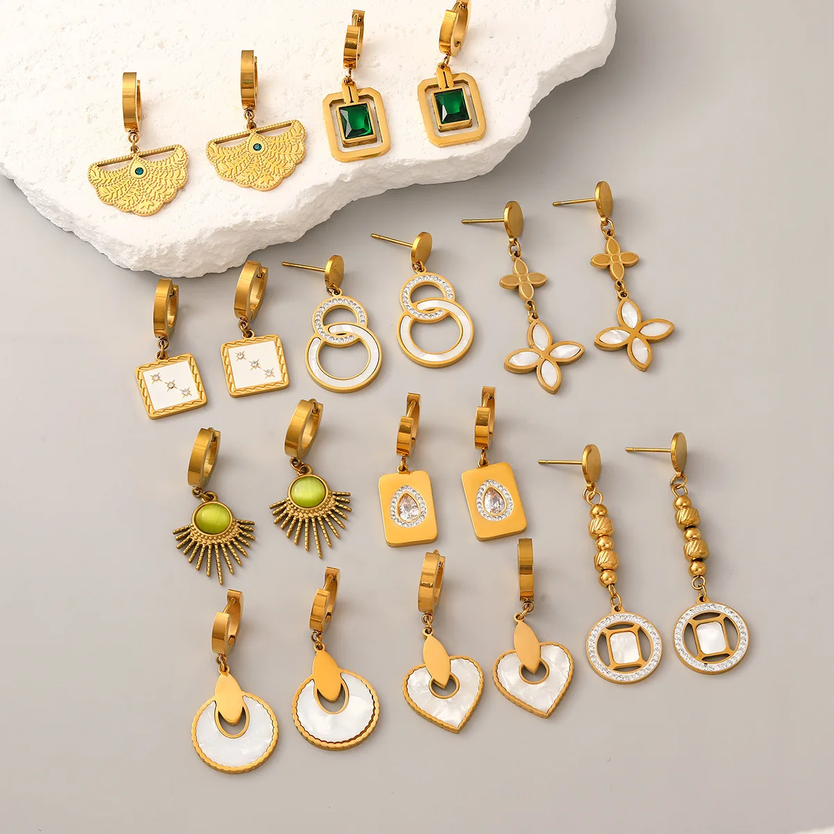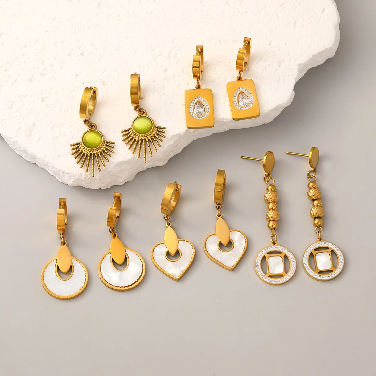 MW Trendy Waterproof 18k Gold Plated Stainless Steel Earrings Geometric Natural Stone Heart Sector Drop Earrings Wholesale