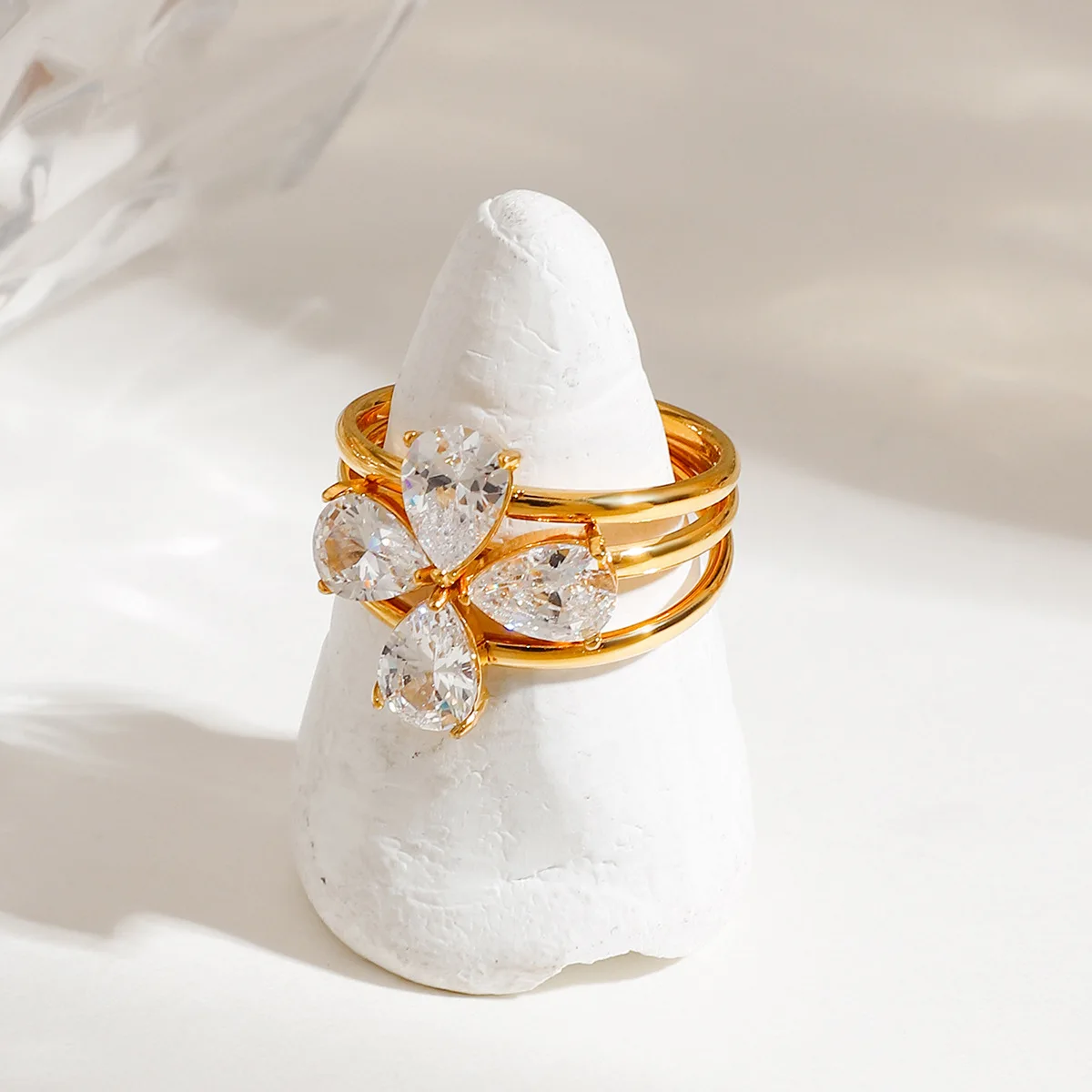 Mirawell Women's 18K Gold-Plated Stainless Steel Stackable Ring with Four-Leaf Clover Design Trendy Daily Wear Jewelry