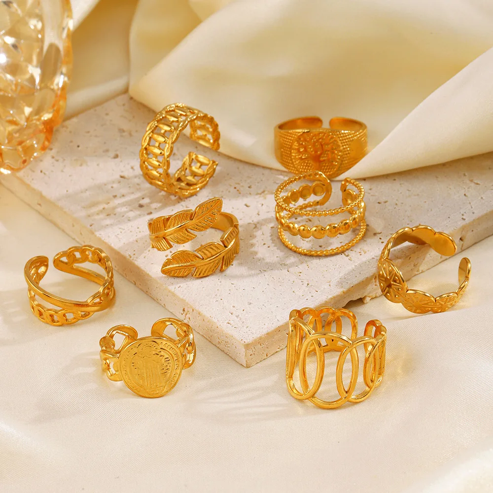 MW Foreign Trade Style Exaggerated Chain Hip Hop 18k Gold Plated Zircon Cluster Waterproof Stainless Steel Large Open Ring
